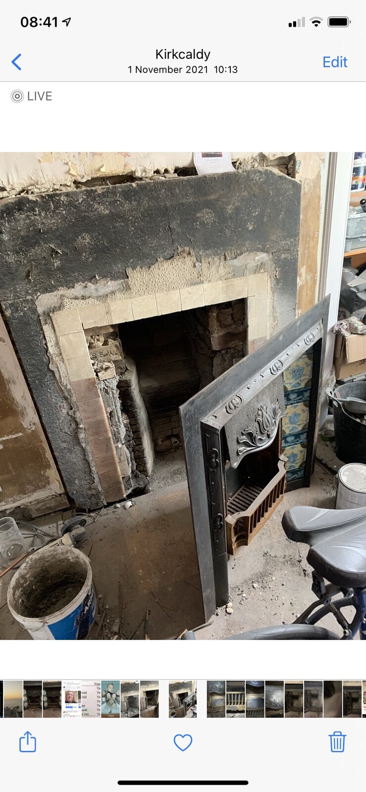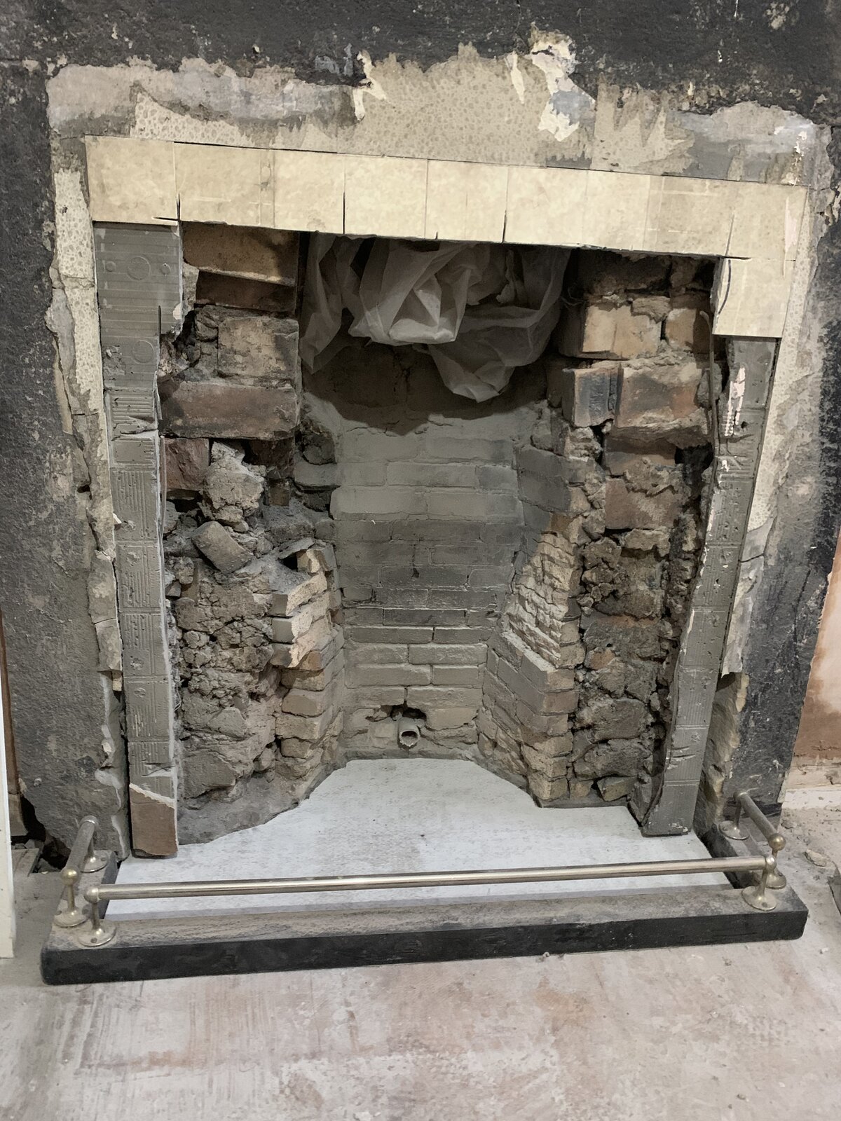 the chimney is swept and clear, it was an old 50s wall mounted gas bar fire which was removed.