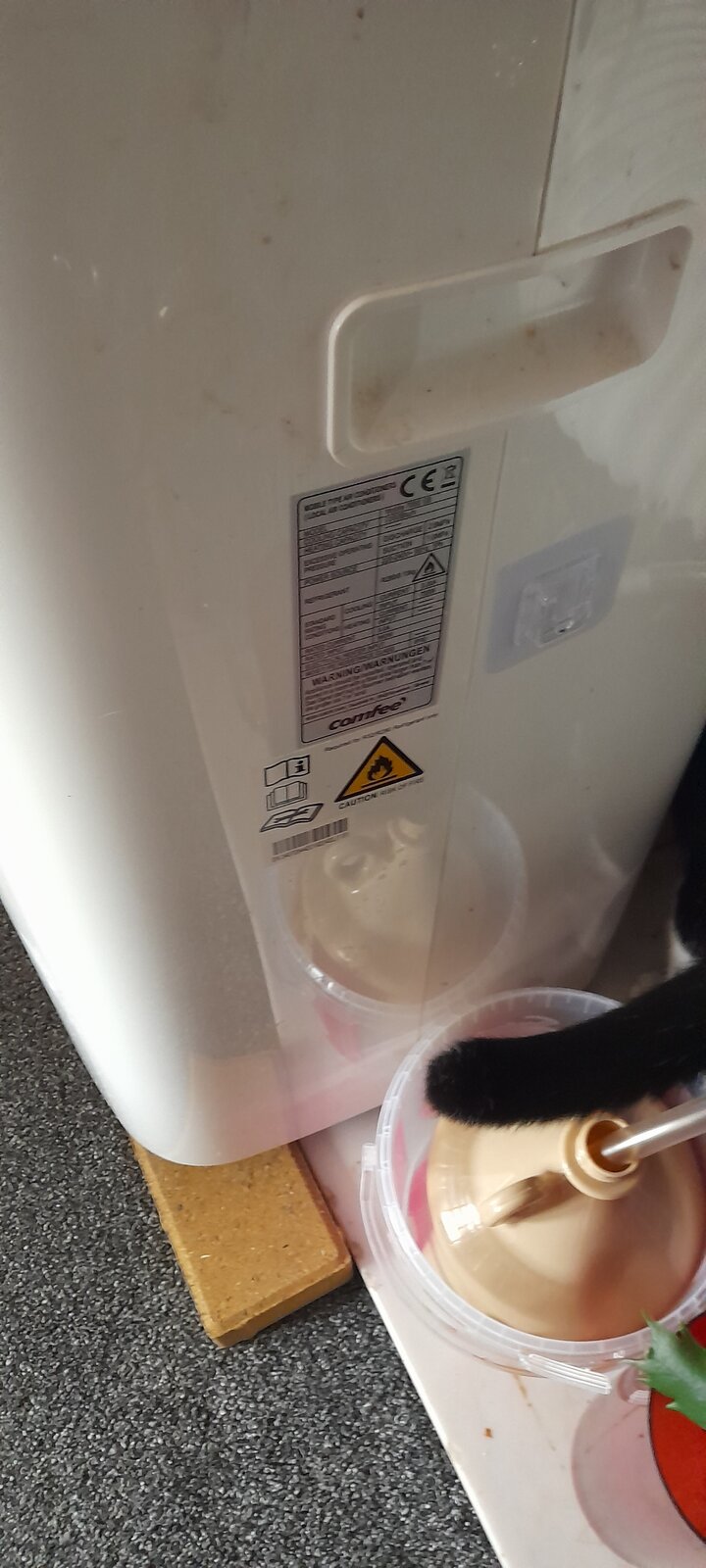 1748686454204.jpeg Condensate tank (old cider bottle) in a sweet box so if it does over flow, I can both see, and it stops floor getting wet, also bit of cats tail. Since starting thread, AC has not run, and in general we are looking at maybe 4 weeks a year, where required, so not going to great lengths to get rid of condensate.