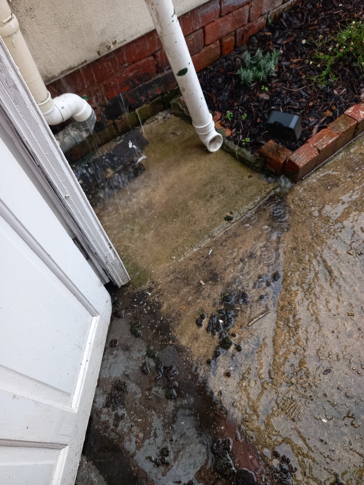 As such, surface rainwater backs-up and then floods under the door and into the conservatory area, draining into the inside gully.