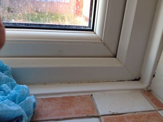 JOB2: Where the window frame in the kitchen meets the tiles - this sealant is manky & needs renewing.