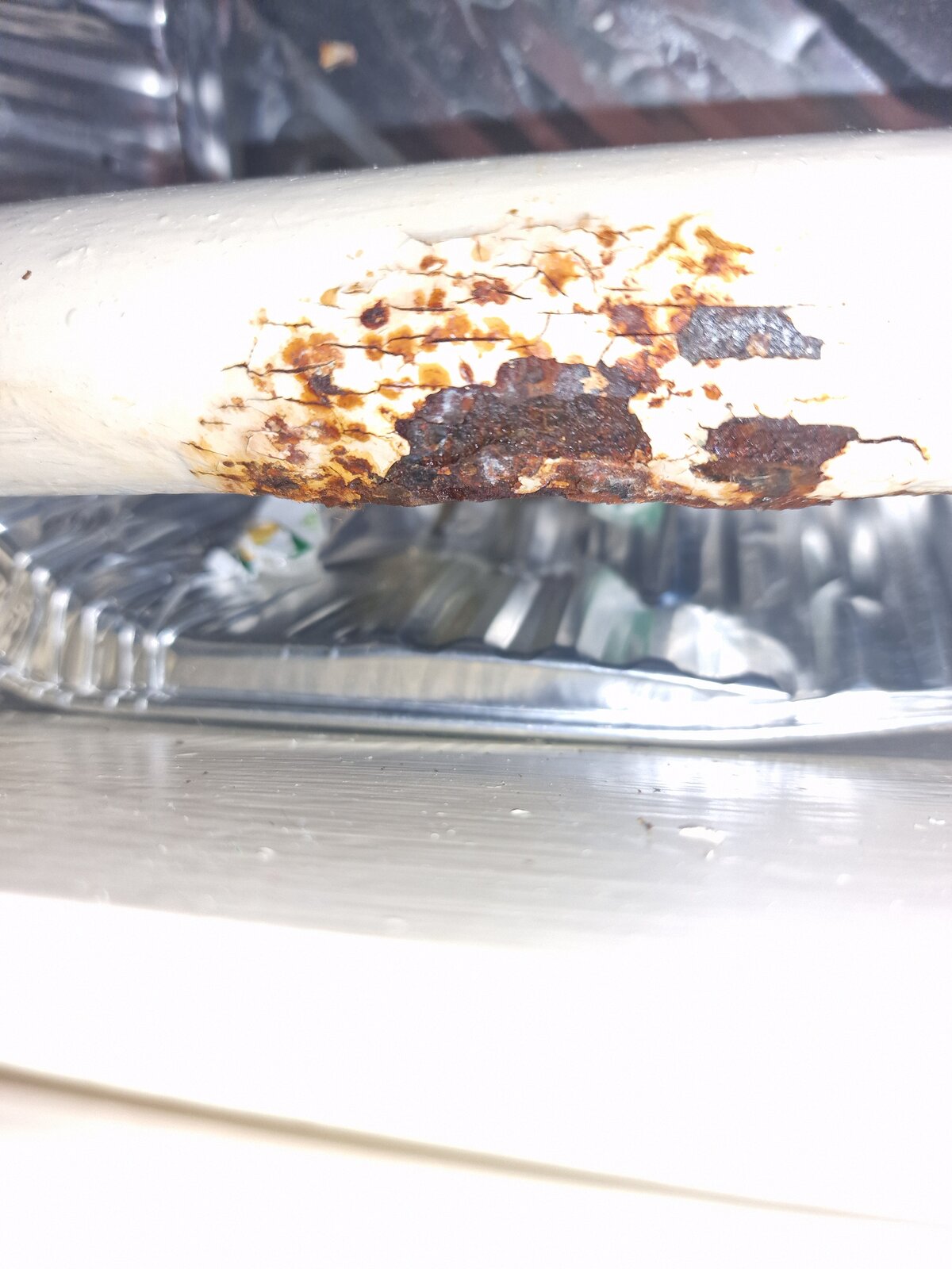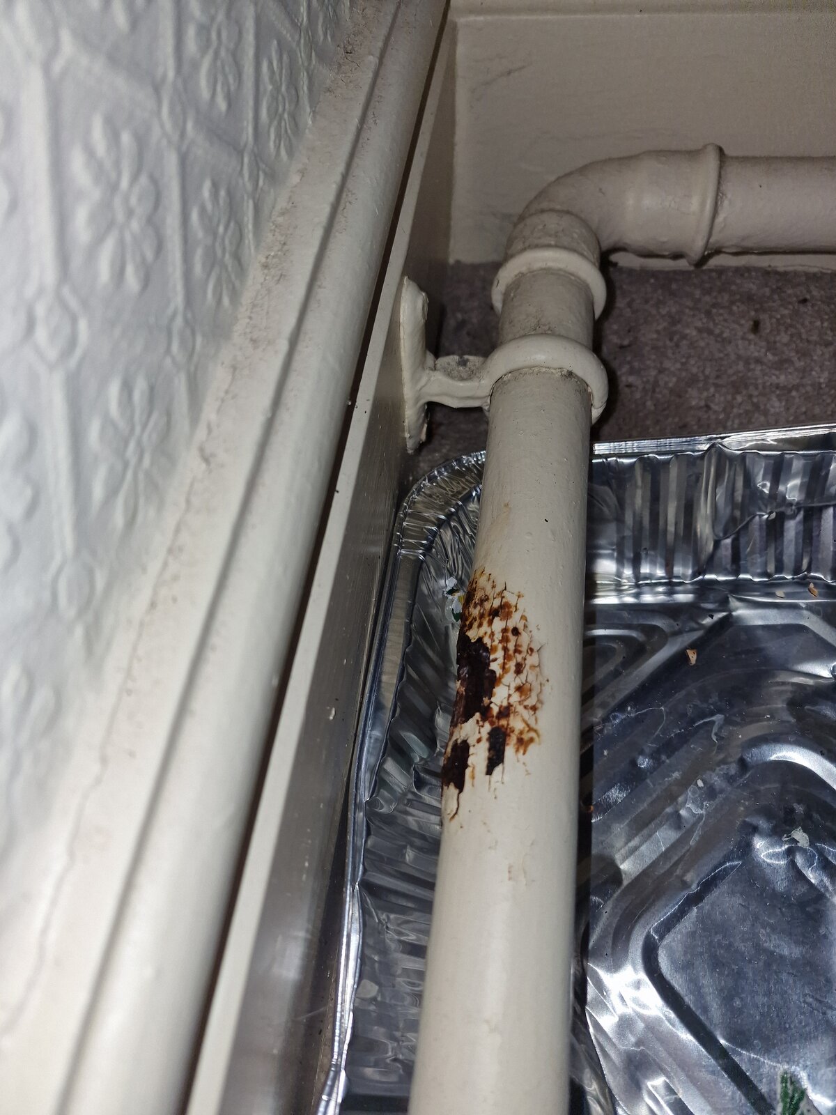 After moving a set of draws I've found a spot on my one pipe central heating flow that's rusted and leaking very slightly.