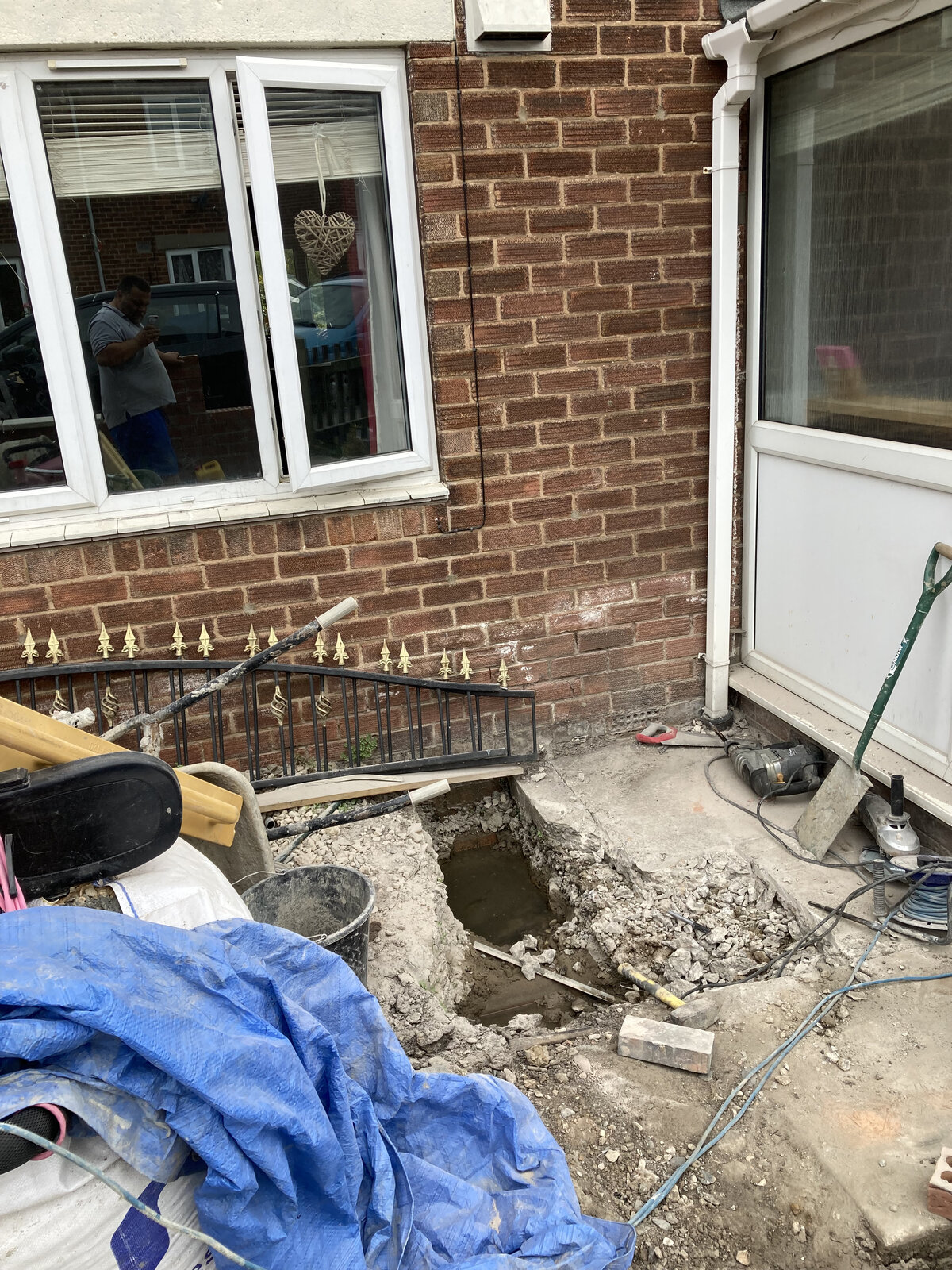 I'm building wall up on televised of the old h with a window in to extend the width of the porch but keeping g the current floor or e!the same I just can't fathom the doc on the house, usually you see a bit.of black dpc sticking out lol