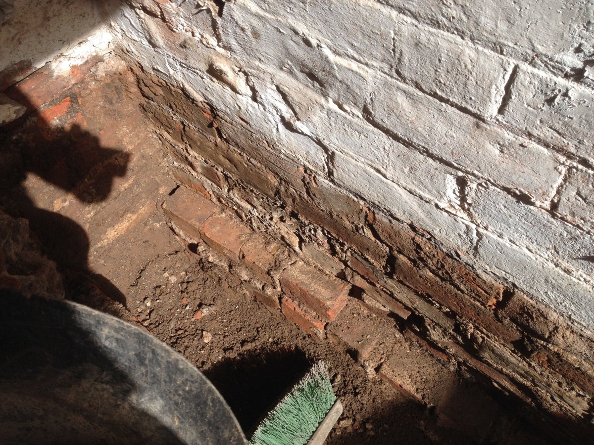 I'll re-point the brick with lime mortar where necessary. After that is where I need some help, how do I finish the below ground wall? What's the best thing to do with the below ground bricks?