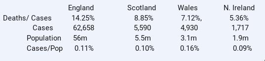 The wales - england difference doesn't really fit in with that. B'ham for instance is 70% and Wales 94% yet death looked at this way doubles for an increase in infections. Wales being 94% compared with 80% for both isn't going to alter the 80% by much.
