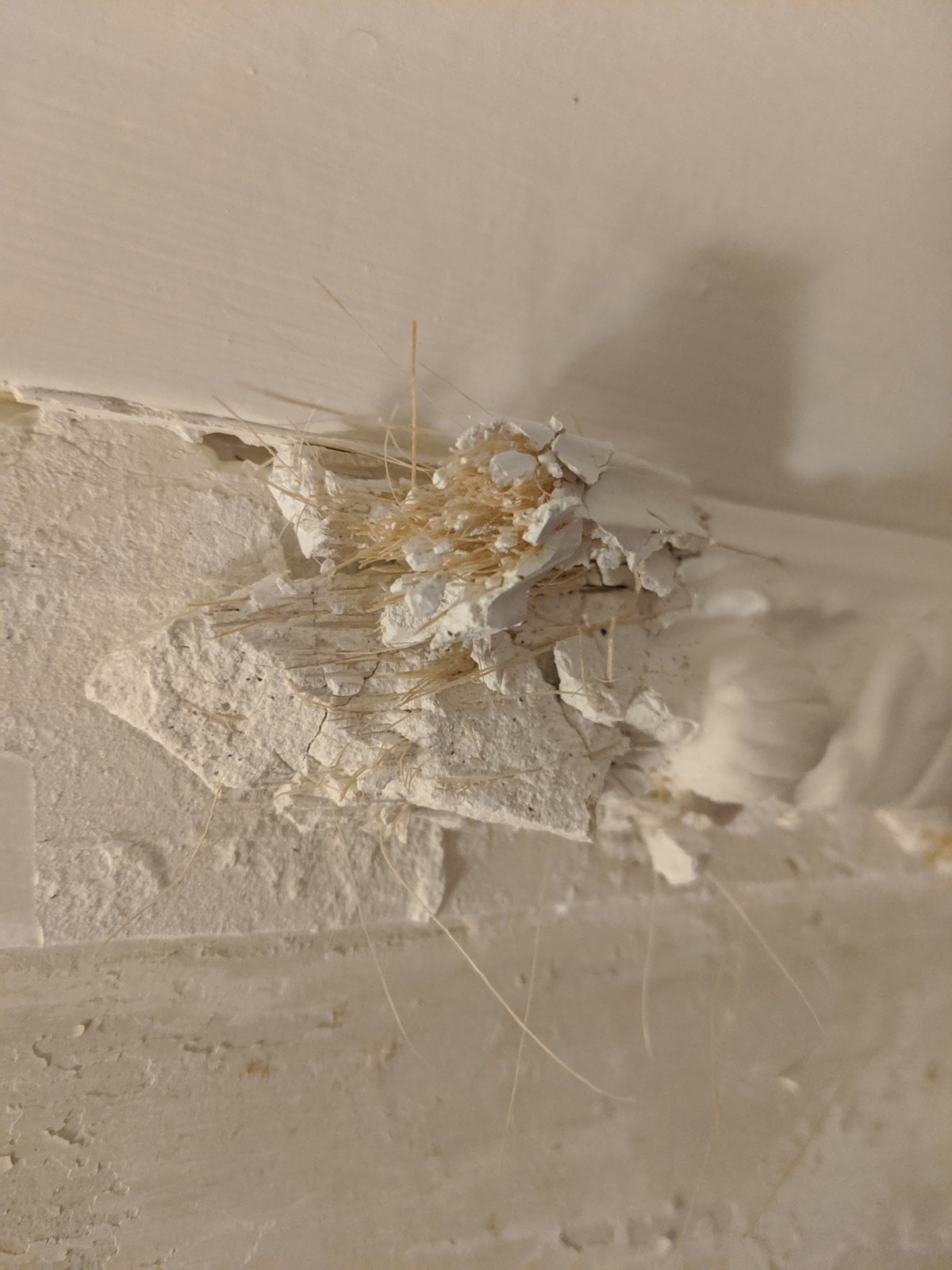 Started to remove some coving trim under the main coving. Seems to have this yellow fibre mixed in with what I think is plaster. Anyone know what this is? Is it safe to remove? Worried it could be something linked with asbestos. House was built in the early 70s. Did think it could be horse hair but seems too yellow!