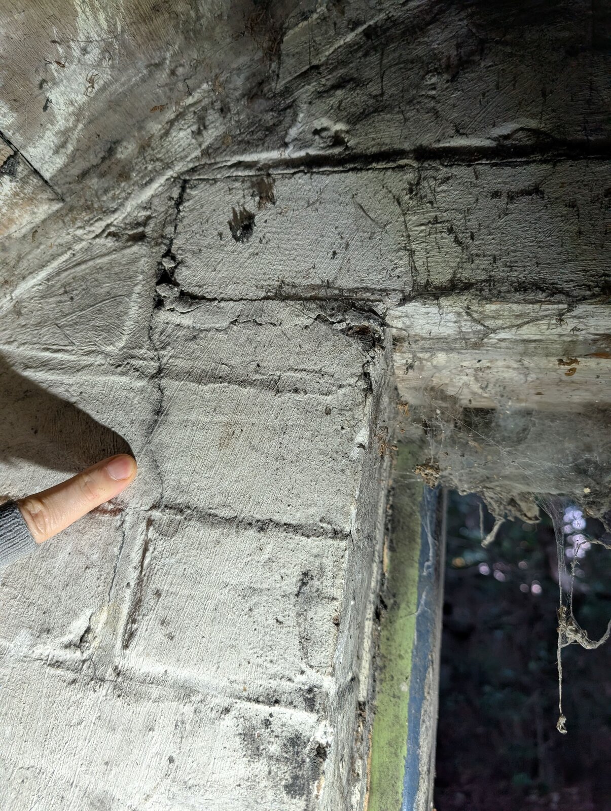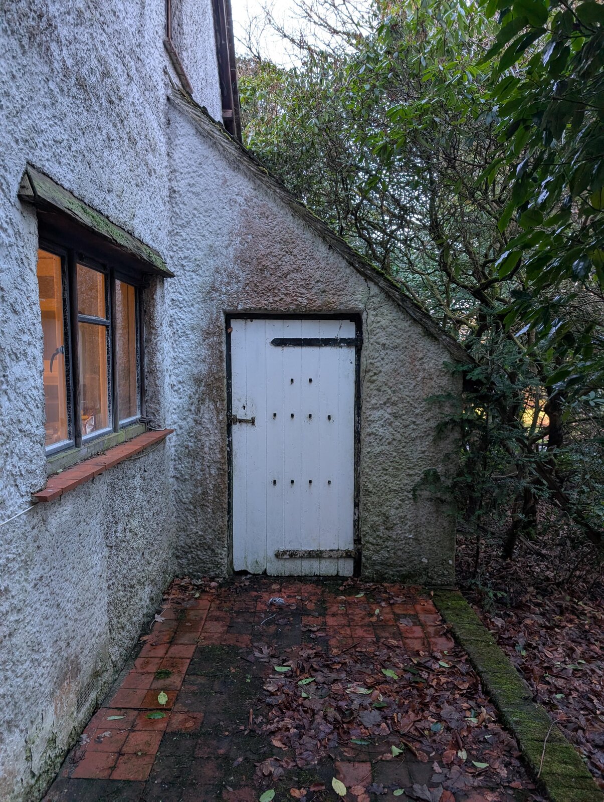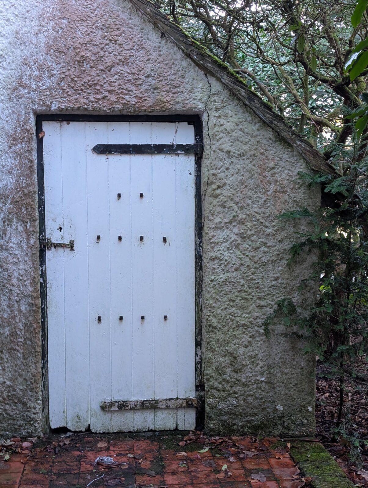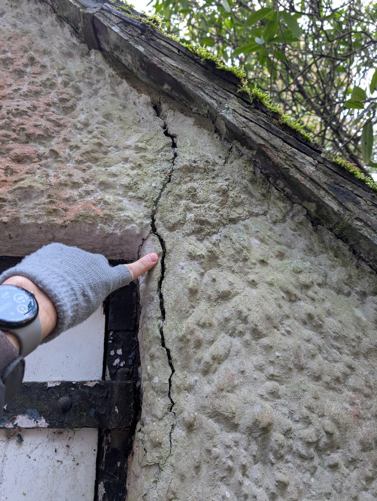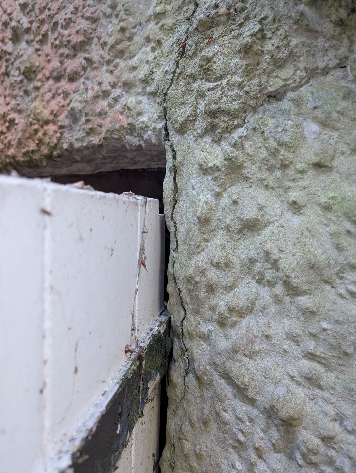 I have a 1907 property with pebbledash exterior. You can see from the photos that there are cracks by the door to our coal shed. I am concerned it might be subsidence. But also, it might be mechanical stress where the raised door hinges come into contact with the pebbledash, leading to cracks that way.