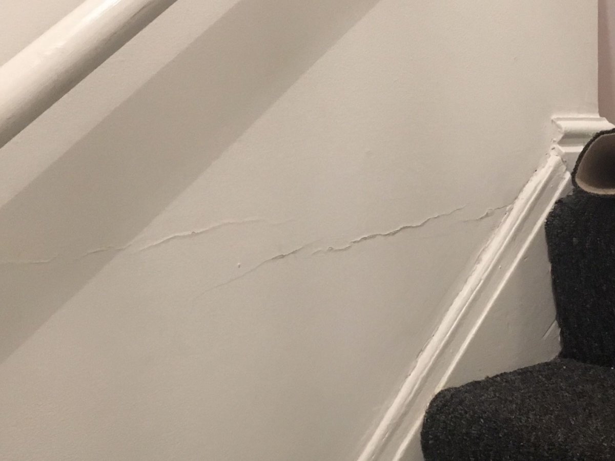 A crack appeared in the plaster by my stairs. I scrimmed it and went over with Easyfill. Then sanded and painted. However the crack has come back. There is nothing below the wall and its not supporting but there must be movement somewhere. Need to get rid . What is best way to try and solve this from coming back. Smash out fill with caulk ?