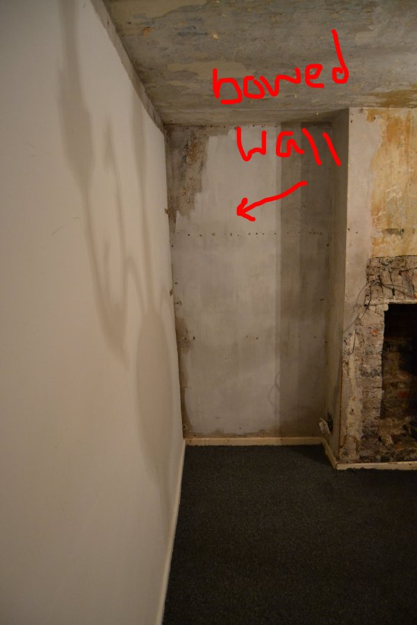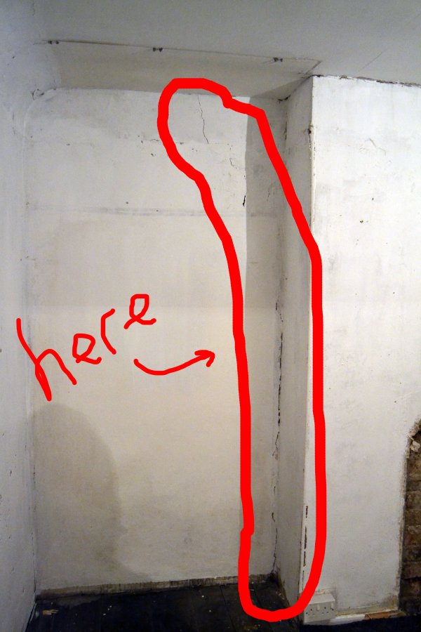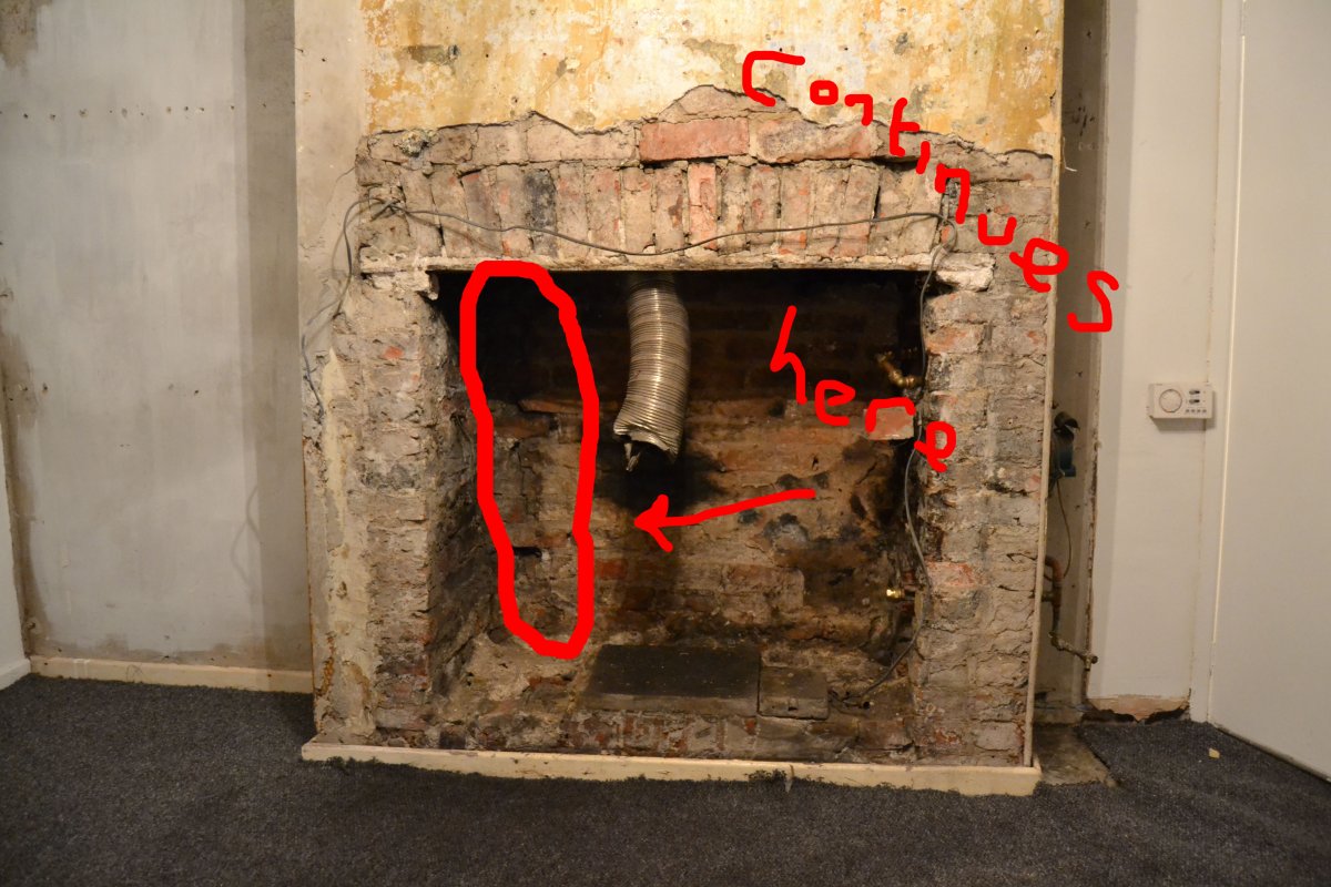 Other fireplace is directly underneath the other room showing the crack continuing.