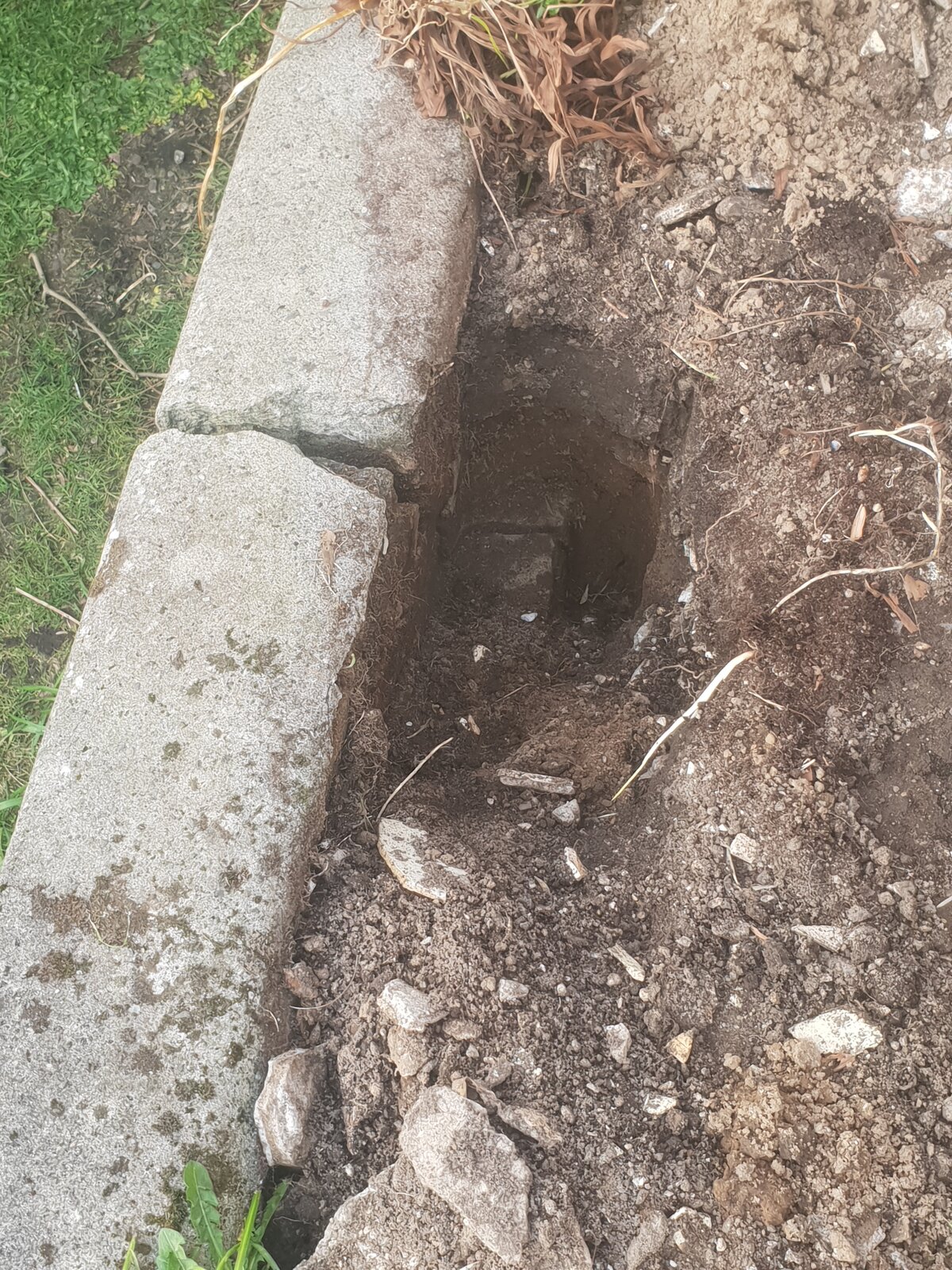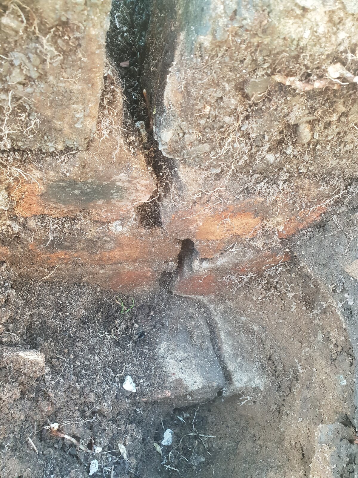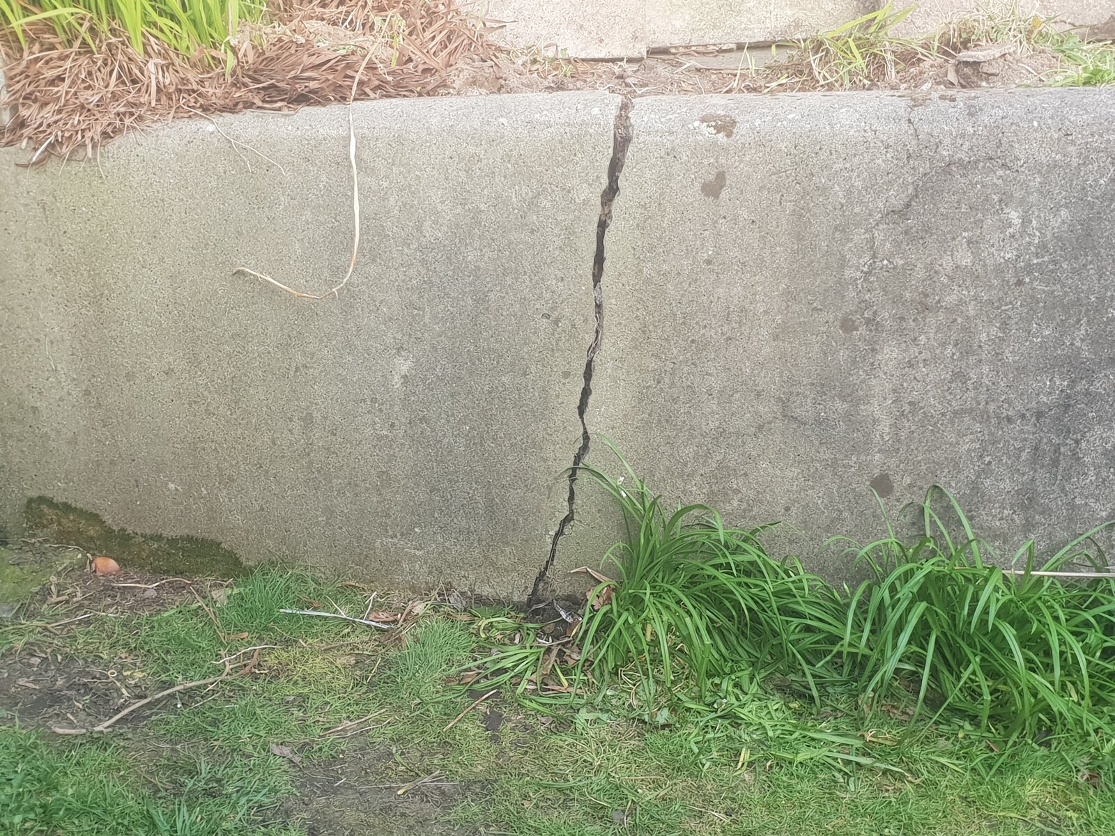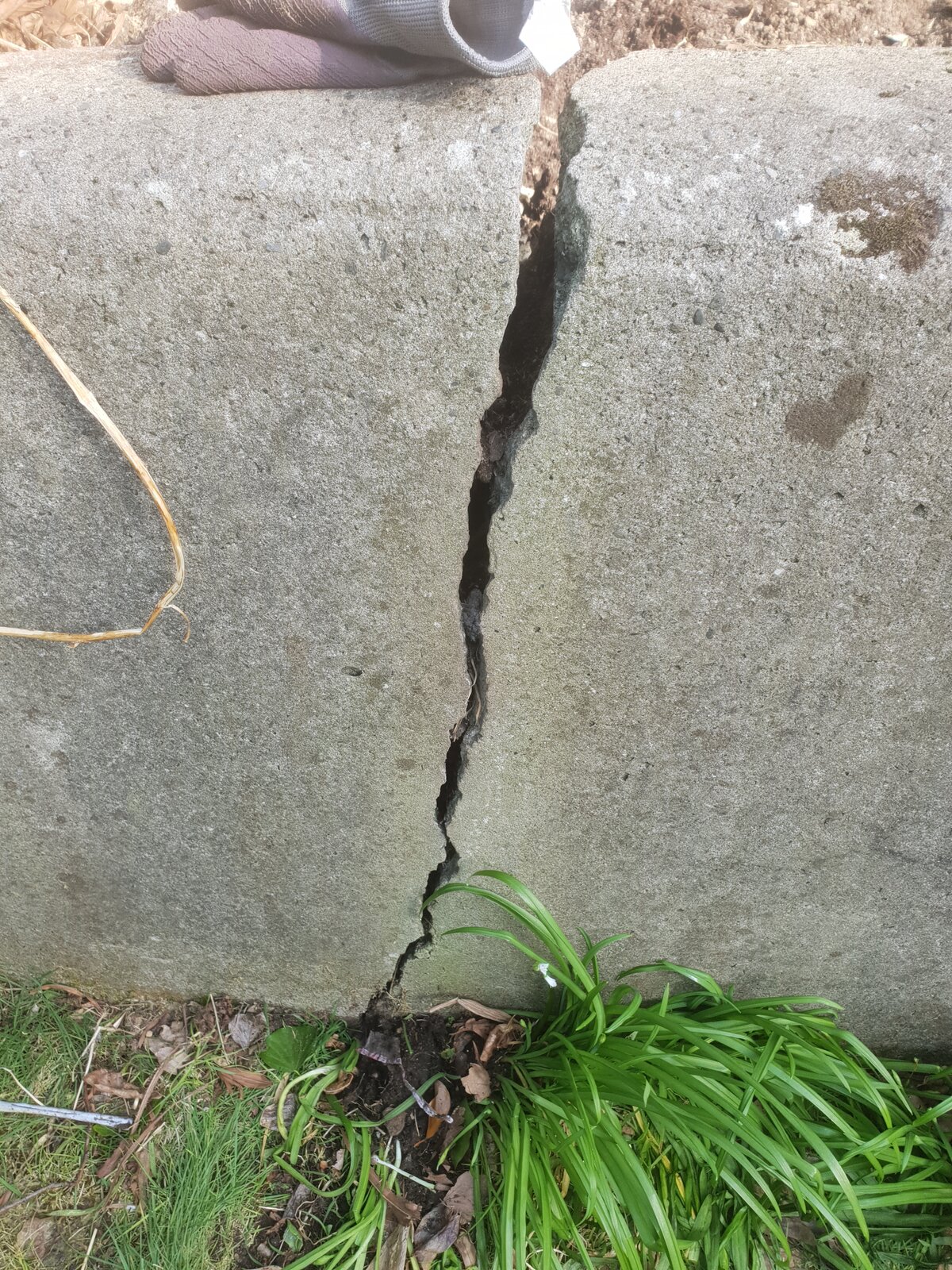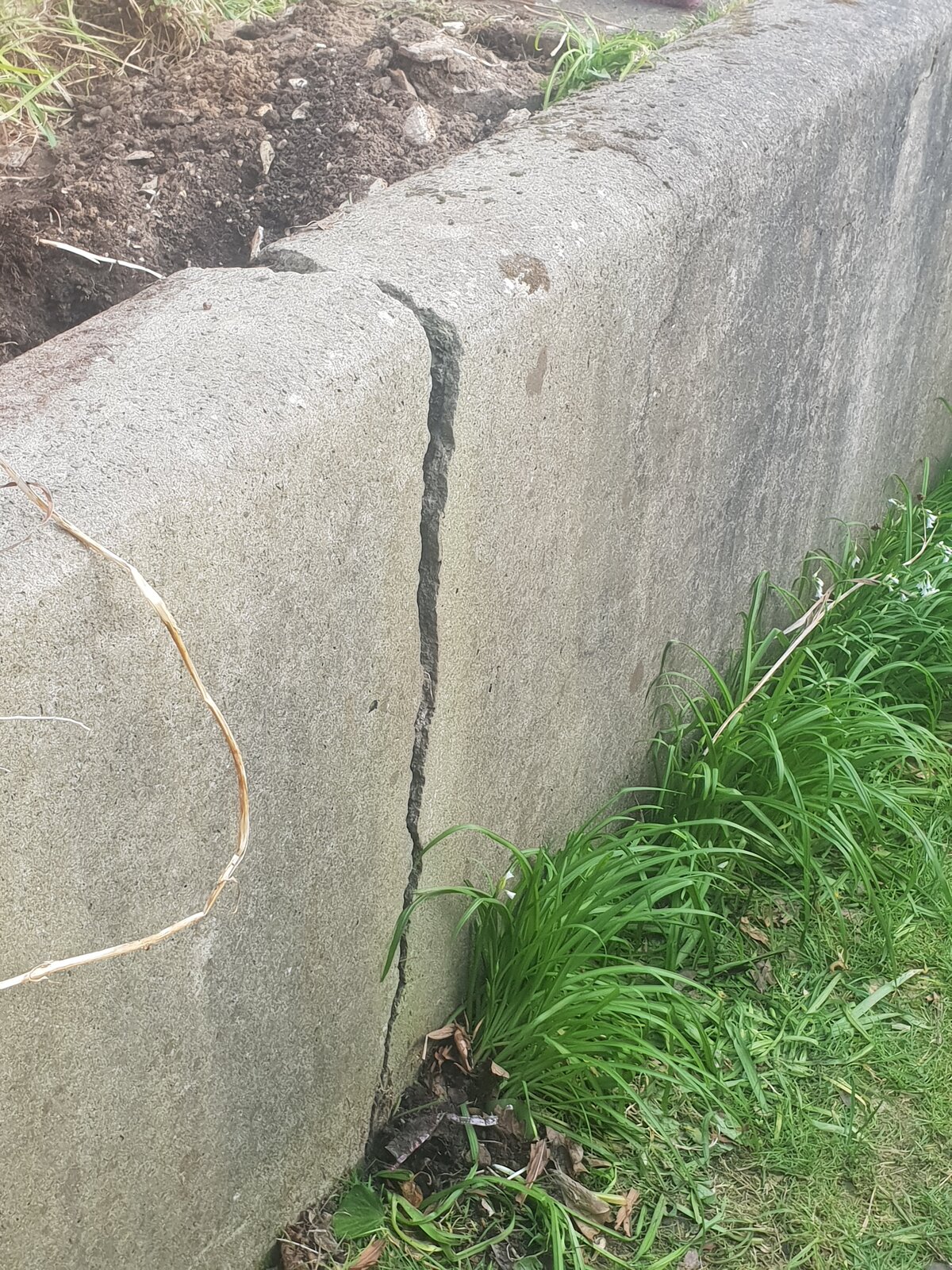 Today I dug a whole to see how deep the crack goes and it runs right through the wall and the foundation. The wall is about 4ft in height. I have attached some photos.