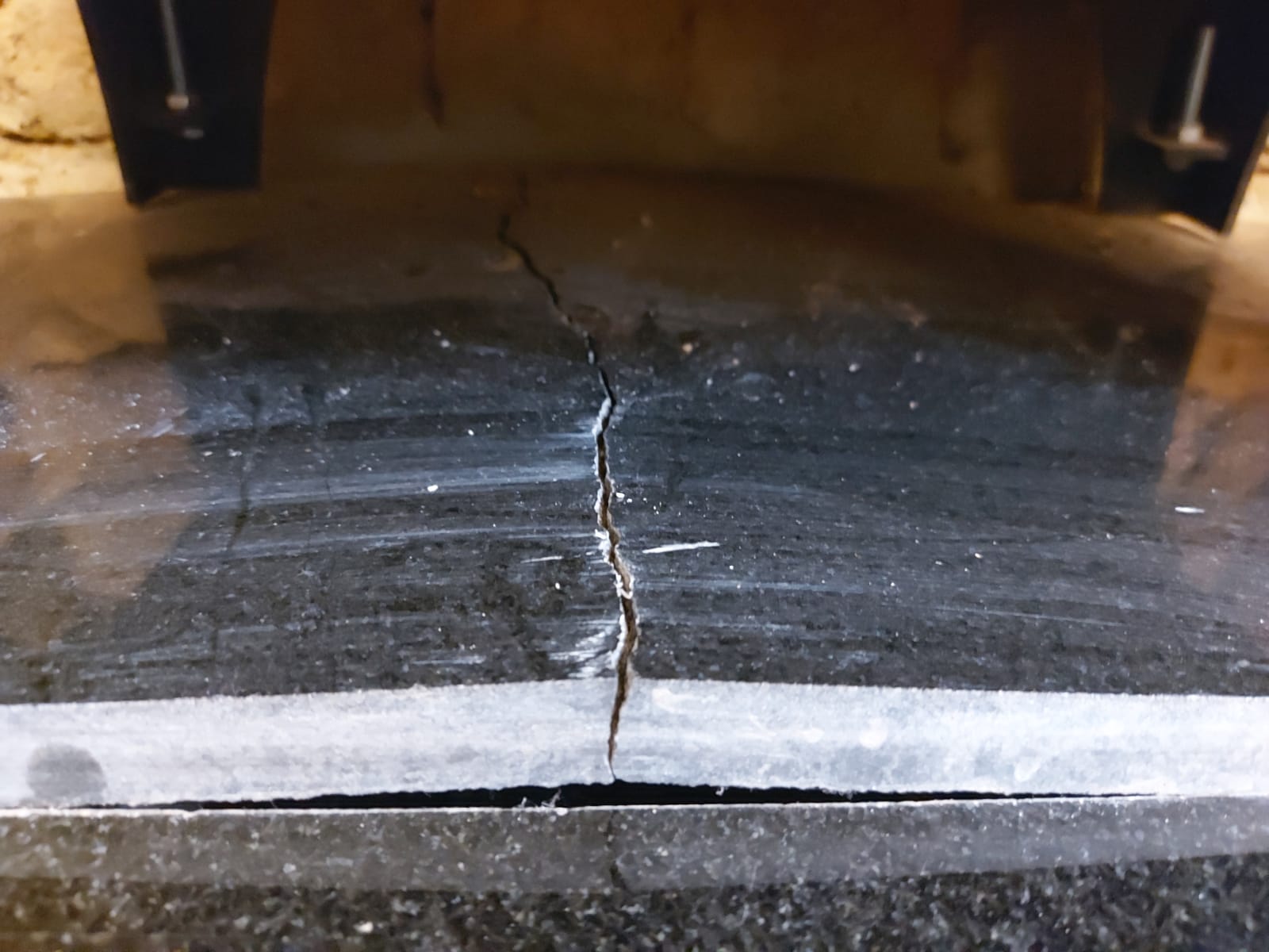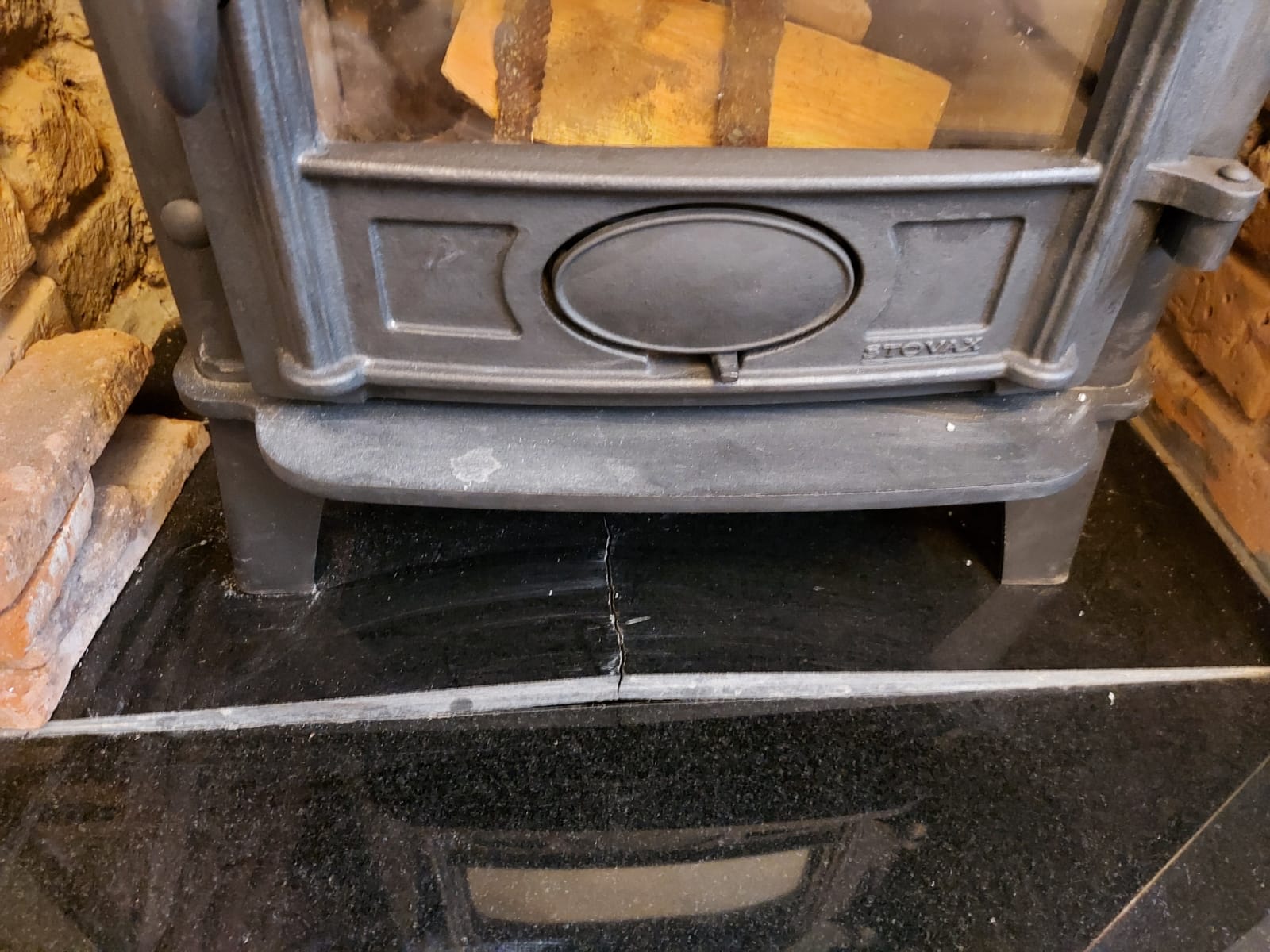 Over the past few months I have noticed some cracks in the granite hearth underneath the stove. They have gotten progressively worse to the point where the hearth almost seems to have broken in two. Obviously this doesn't look very good and also I'm concerned that the hearth could collapse during use possibly posing a fire risk?