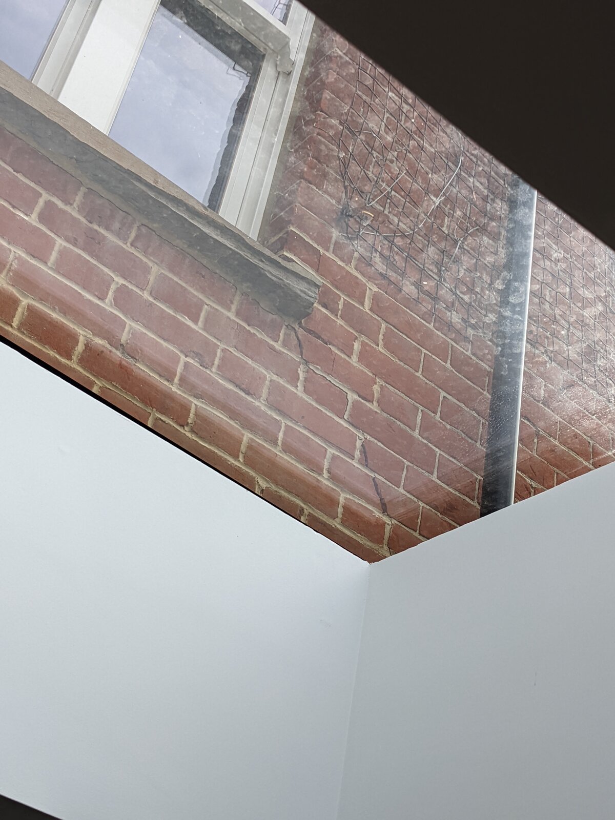 I'm in the process of buying a house and I've noticed some cracked brickwork directly above an RSJ where the kitchen was extended about 3 years ago. I'm still waiting on the survey (level 3), but I'm concerned that the surveyor will bottle it and not give a firm opinion. I'm attaching a photo of the crack as seen through the extension skylight and also a plan (not the most relevant plan, but all I have to hand as the local planning website is down for the weekend) with the location of the cracks circled in blue.