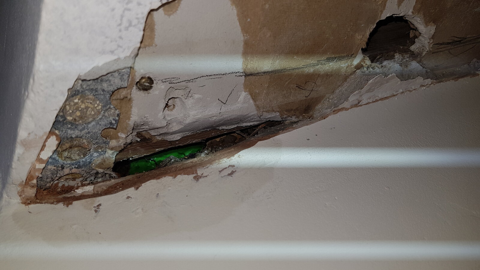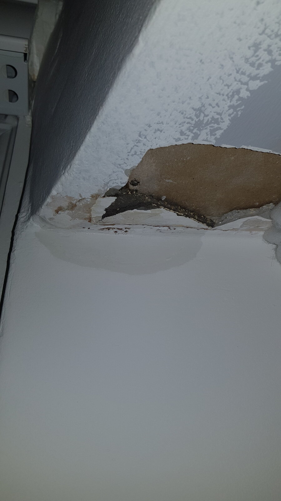 I've noticed a crack in the interior porch ceiling getting worse. Recently after the storms I noticed a wet patch appear on the newly plastered wall where the interior porch ceiling meets the wall, Same place as the crack.
