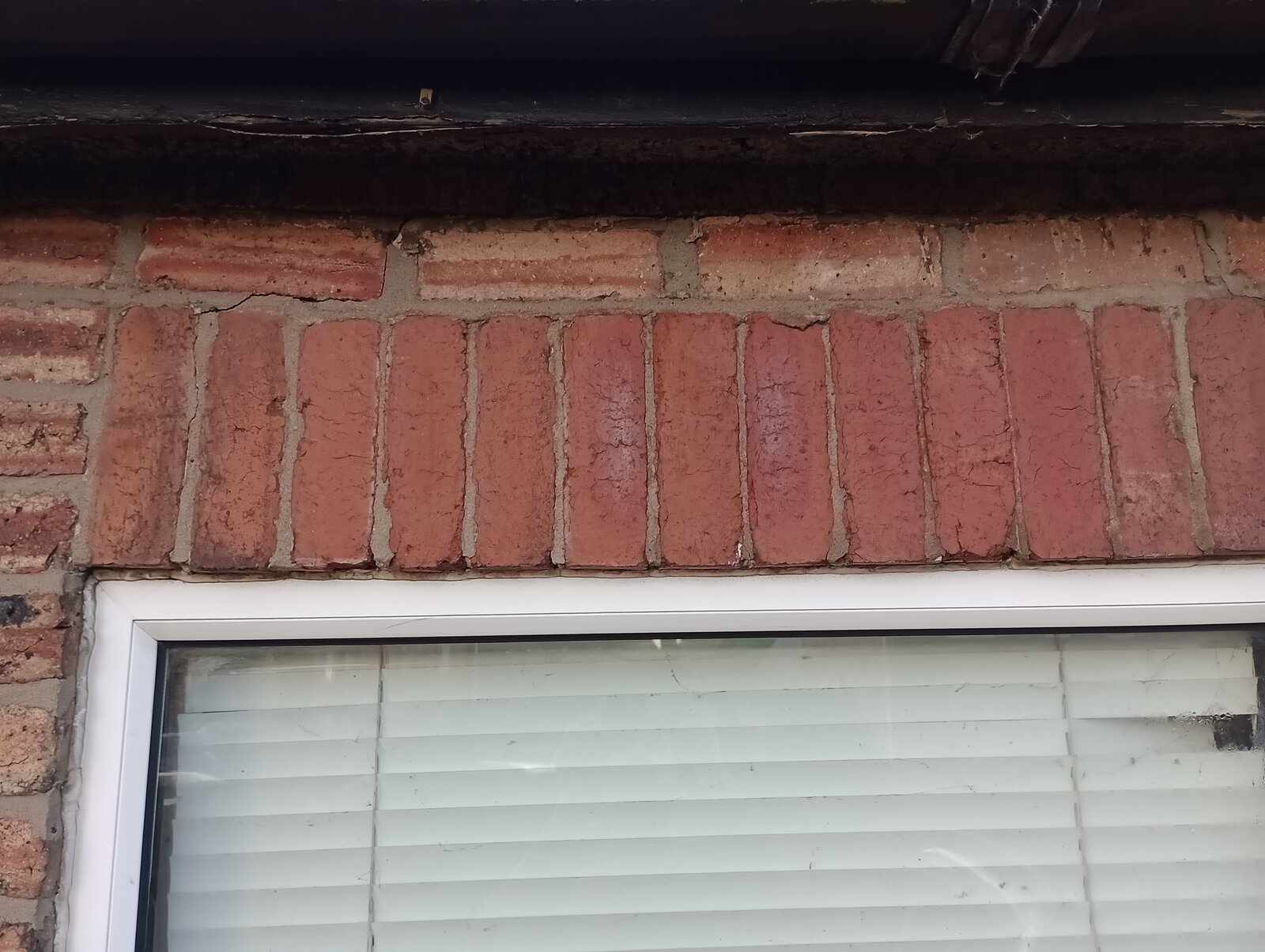 Struggling to take a decent pic but I've got a single skin outhouse (1970's build) with a concrete roof. I'd noticed a slight sag in the soldier brick course above the UPVC window a couple of years ago but no sign of cracking - I've now noted some cracking to the mortar and movement of the bricks - on closer inspection, it looks to have been heavily repointed in these areas so I'm guessing this might have shown some cracking prior to the sale of the house to us 5 years ago.