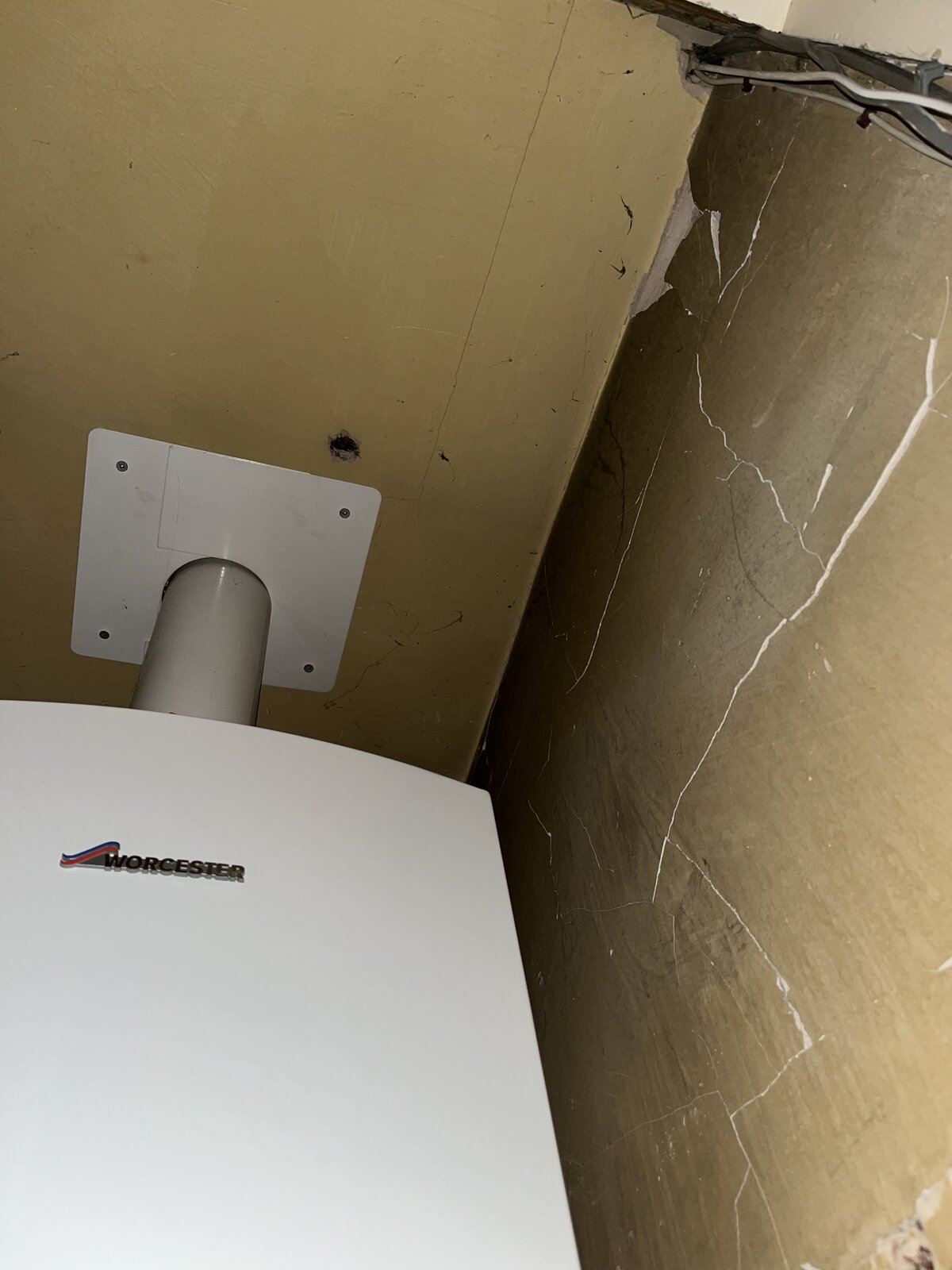 So recently have just bought my first house. Stupidly (maybe) didn’t have a survey done for various reasons… have already done some minor renovating (new doors etc) but came across this in my airing cupboard, it was a hot water tank in here and replaced with combo boiler a while back… is this something to worry about? Wall on the other side is the bathroom entrance - shower behind the boiler. Theres cracking on all 3 walls but the one being bathroom on the opposite side being considerably the worst. Any advisement would be appreciated.