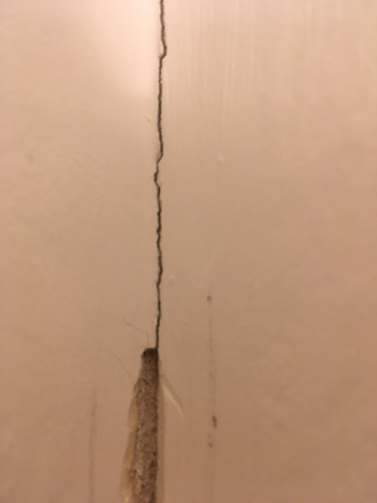 My Victorian flat has developed thin cracks where walls meets walls. I think it's caused by vibrations from the flat upstairs' washing machine. Photos attached.