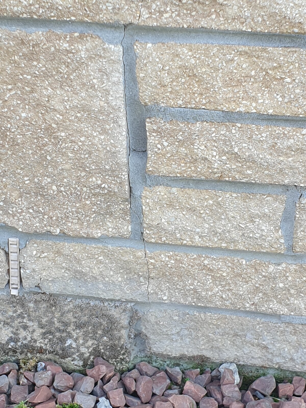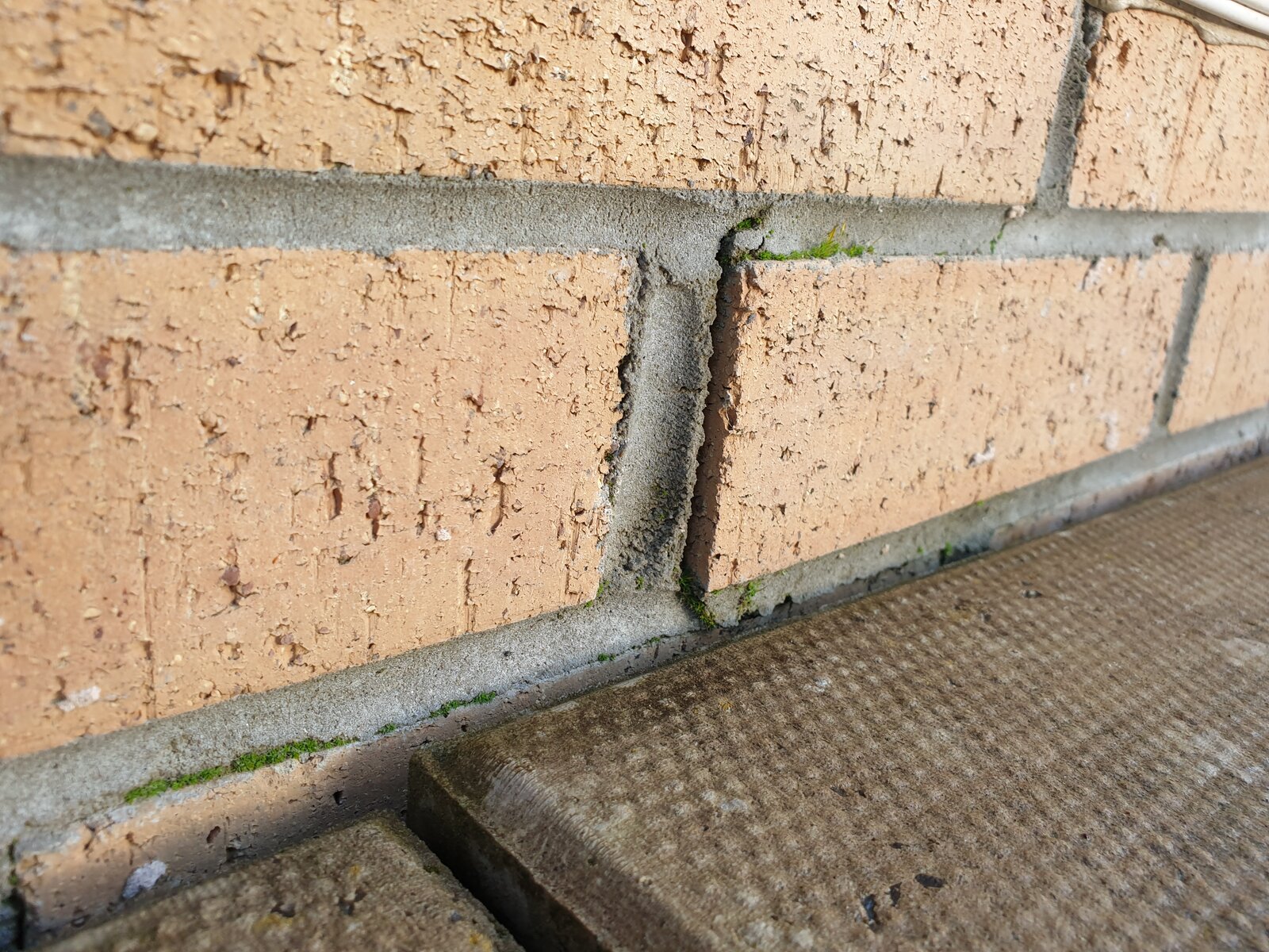 2) Yesterday, I noticed what I am almost certain are new cracks in the mortar and bricks in the front north facing wall, below/around the living room window up to the Juliet bedroom doors. I have previously cleaned algae from the front wall and sure I would have seen these cracks if they were there before.