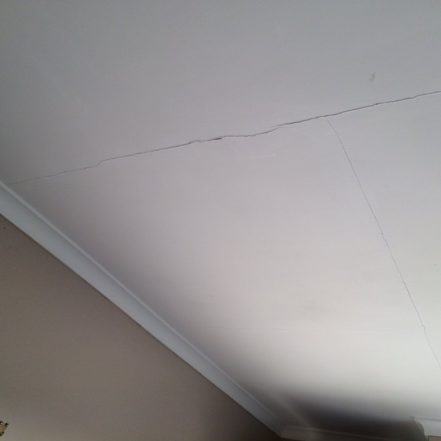 Firstly please excuse my lack of knowledge of anything DIY. I've just moved into a new house and noticed and number of cracks in the ceiling in various rooms. They mainly travel across the middle of the room and some have other cracks at a right angle to them so they mark out an oblong on the ceiling. Most have been painted over so appear to be old but the ones in the master bedroom are newer. The old owners recently had a new window fitted in the bedroom so I'm not sure if that is related.
