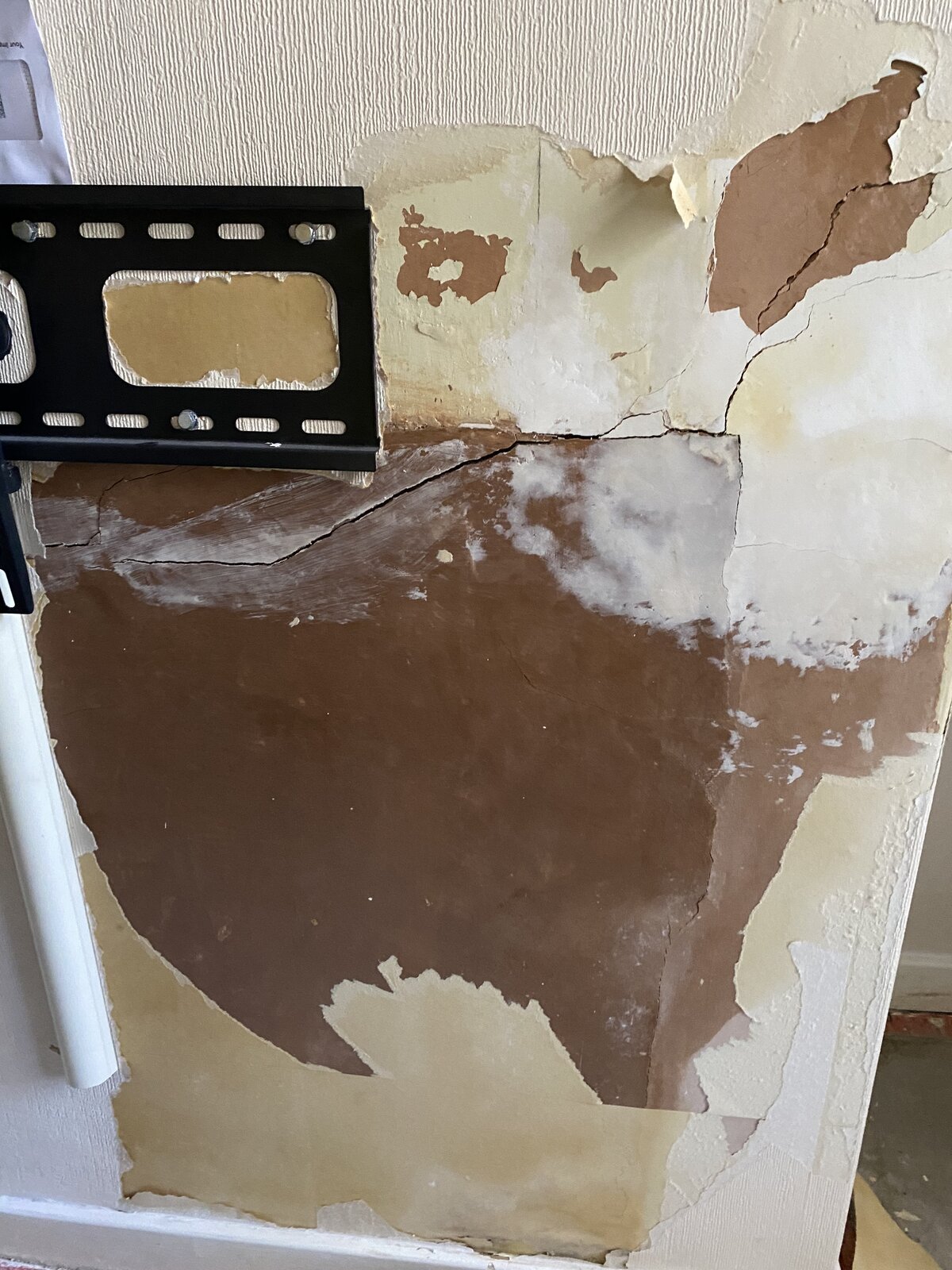 I have recently moved into a middle terraced house built 1890’s. When stripping the vinyl wallpaper in the downstairs living room these cracks in the plaster were revealed on the chimney breast (no cracks anywhere else so far). The chimney breast is very damp- I have got a new damp proof course installed last week. Are these cracks worrying ? Could it be subsidence ? I had a level 3 survey before purchasing. No cracks on the render outside