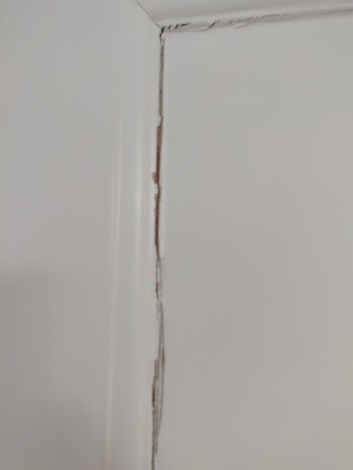 I have decorators caulk and a polyfilla equivalent but can also fairly easily get to a DIY shop for wood filler or something else. I am thinking that the position of the cracks, right in the edges as depicted, might make filling difficult? I could just sand and paint and forget filling! Thanks for any advice...