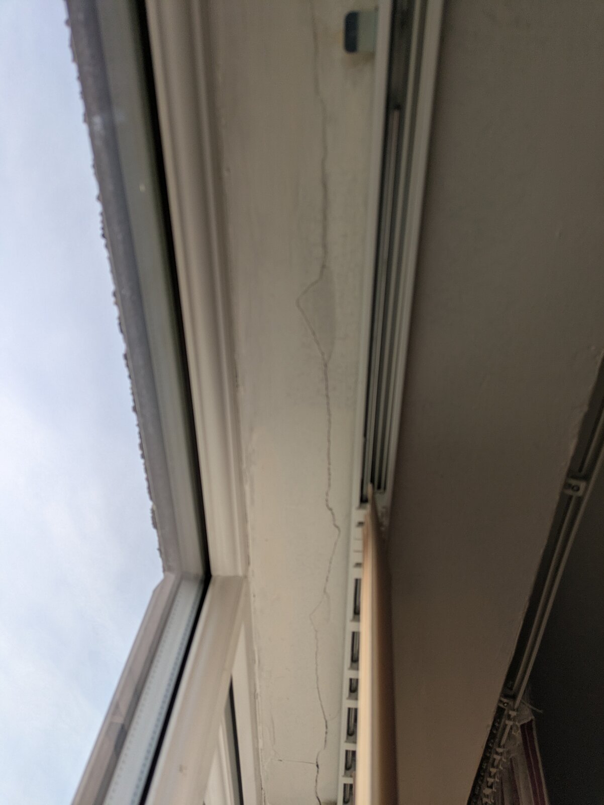 I have some cracks around my windows and I am looking for advice on the best cause of action. There doesn't seem to be any external cracks. There is a large crack that runs the entire length, the plaster sounds blown when I tap it. The windows themselves also have some pretty hefty gaps in the corner that change size depending on temperature. The house has had the windows replaced prior to purchase