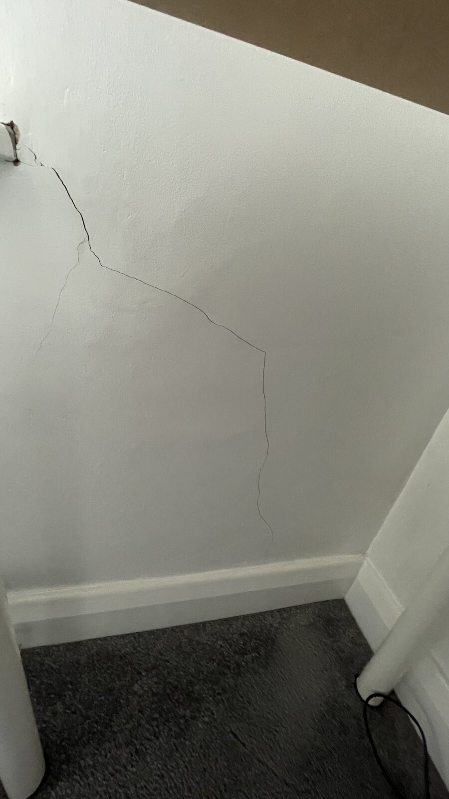 There is also a crack on the other side of the wall internally and this was skimmed about 5 years ago too.