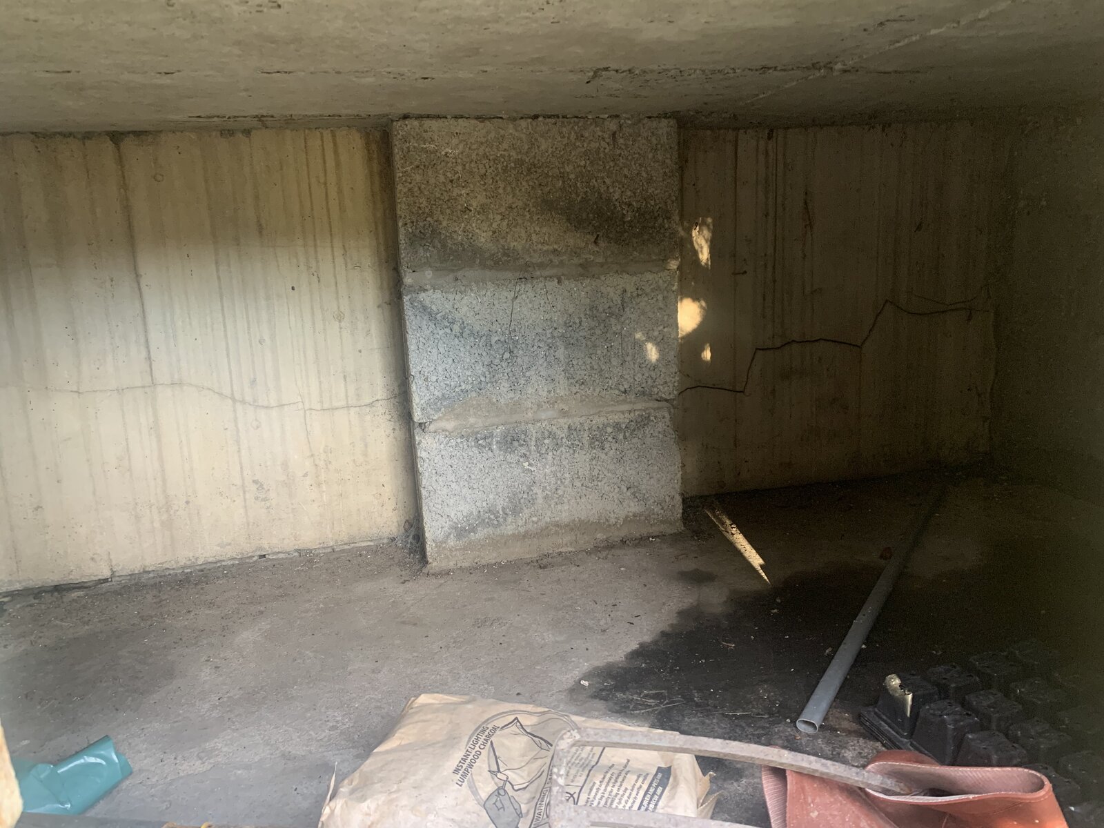 at the back of this recess i can see big cracks in the render (this wall essentially sits on the foundations)