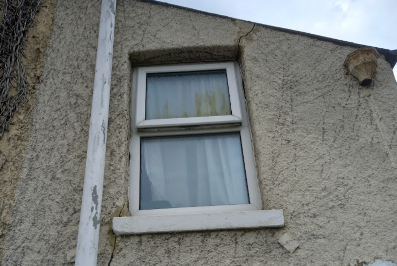 This, coupled with the crack/s visible externally, to the top, right of the window and the long vertical crack in the render to the bottom left.