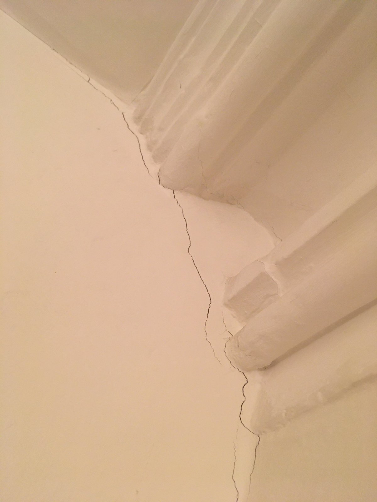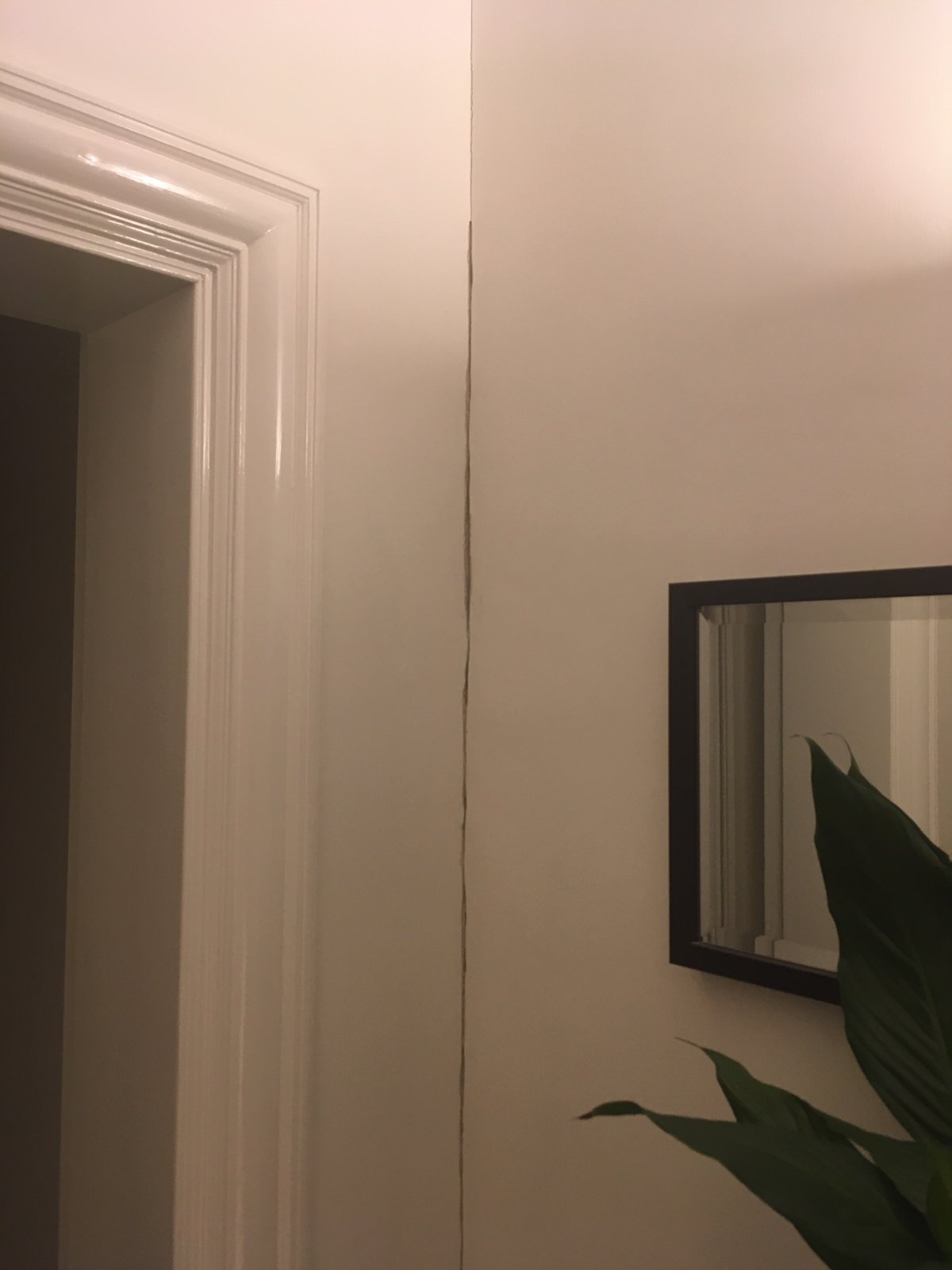 My Victorian flat has developed cracks where walls meets walls. I think it's caused by vibrations from the flat upstairs' washing machine. Photos attached.