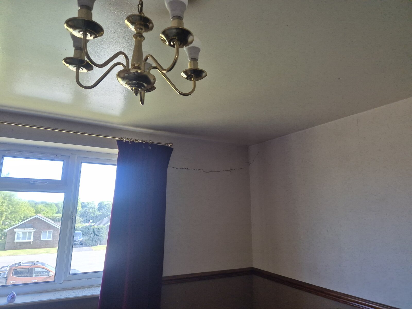 Its a two bed first floor flat, built 1940, with horizontal cracks on the external walls both sides of the property just below the top of windows, on one side they go through the living room and into the bathroom, on the oposite side of property it is just in one of the bedrooms, the cracks are upto 4mm but only on the inside, cannot see any cracking on the outside of building