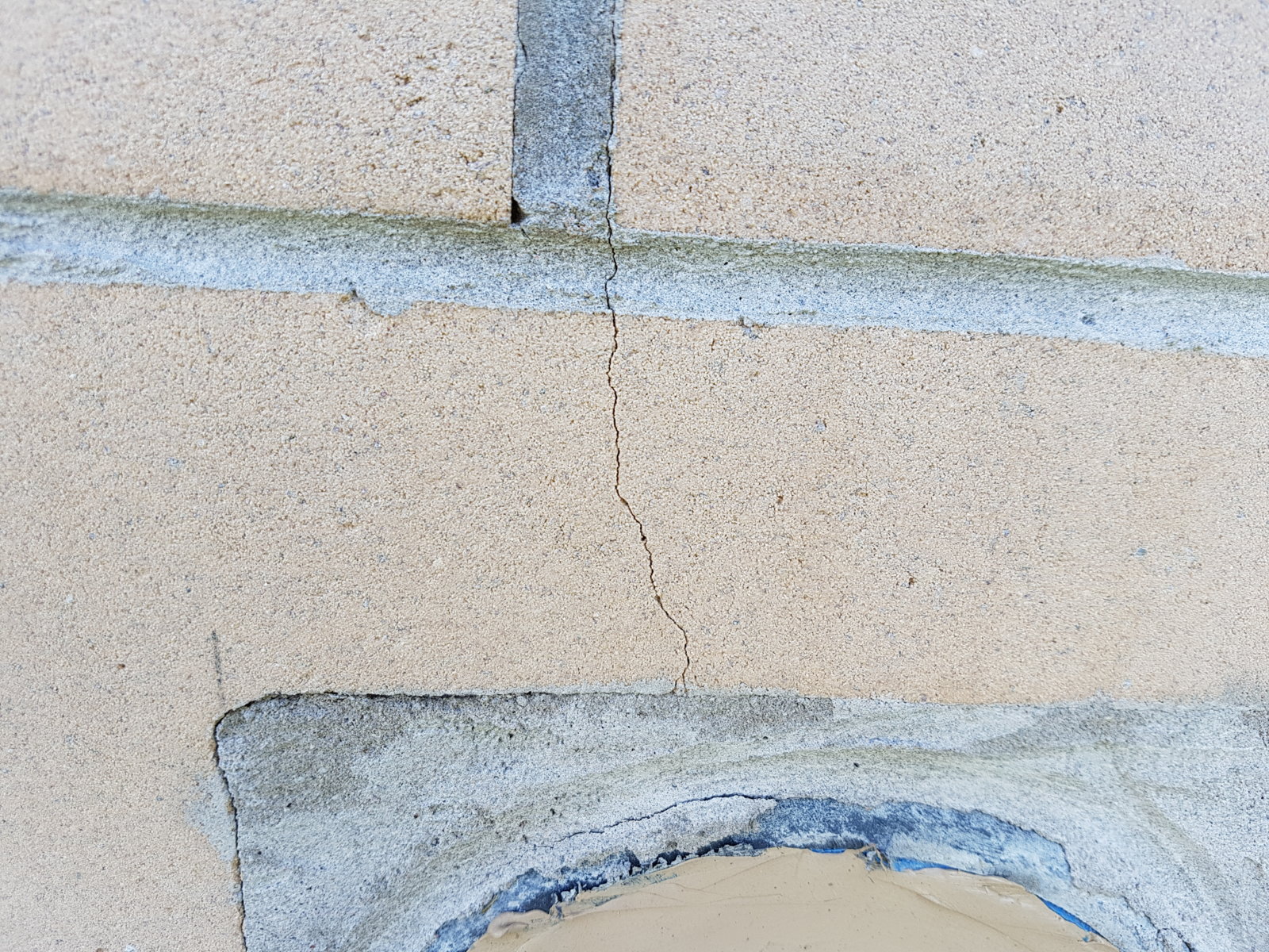 I got the builder to look at them but he said they weren't concerned as the crack is less than a £1 coin size & there is breeze block behind the facing. (Each individual block is breeze block at the rear coated with the sandstone type finishing as far as I can gather).