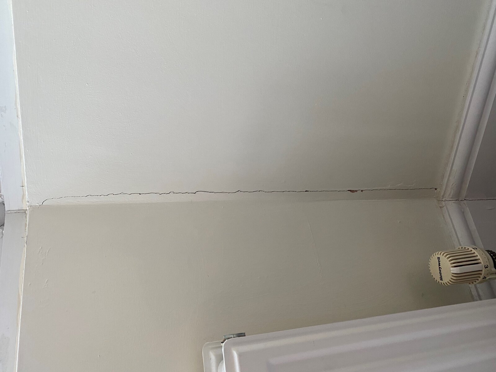 There are no cracks on the external wall and these cracks have been on the internal wall for as long as I can remember (We painted the room 9 years ago) and have not grown in size. I was wondering if anybody would know if this would raise the eyebrows of a surveyor?