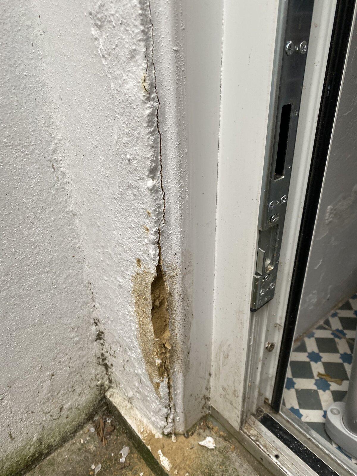 Knowing very little about house and bricks, i have noticed a burgeoning and cracked piece of paint on the side of one external door, i have opened it a bit and found very friable brick. (i would assume this is brick?)