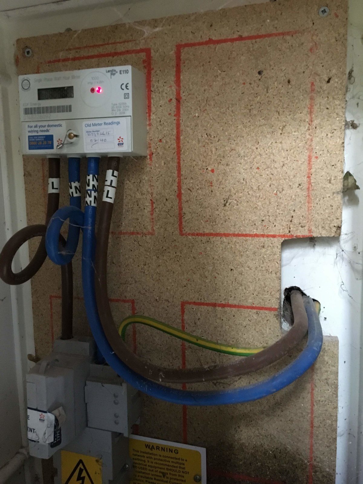 The new CU would be c2.5m from the current CU, and similar distance from the meter which is close to current CU (on outside wall).