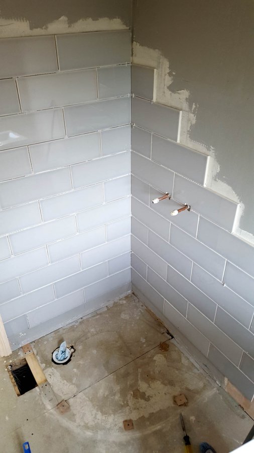 As a result the tiles would not overlap the shower tray at the outer edges. I used a Mapie shower proofing kit to tank the walls before tiling was done, but the tape peeled off the shower tray at the outer edges because the gap was too big. apparantly it is only designed to cover a gap of 5mm or so.