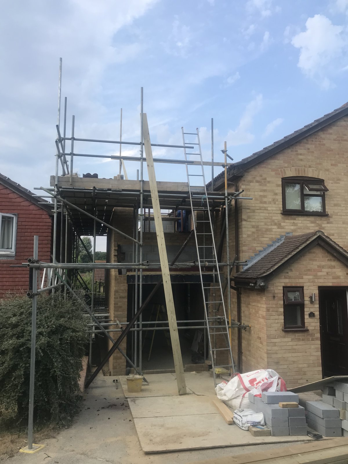So I’ve had an extension built, the roof on the original house is sloped left to right and the extension is front to back so the extension roof is cut into the existing roof and the lofts meet.