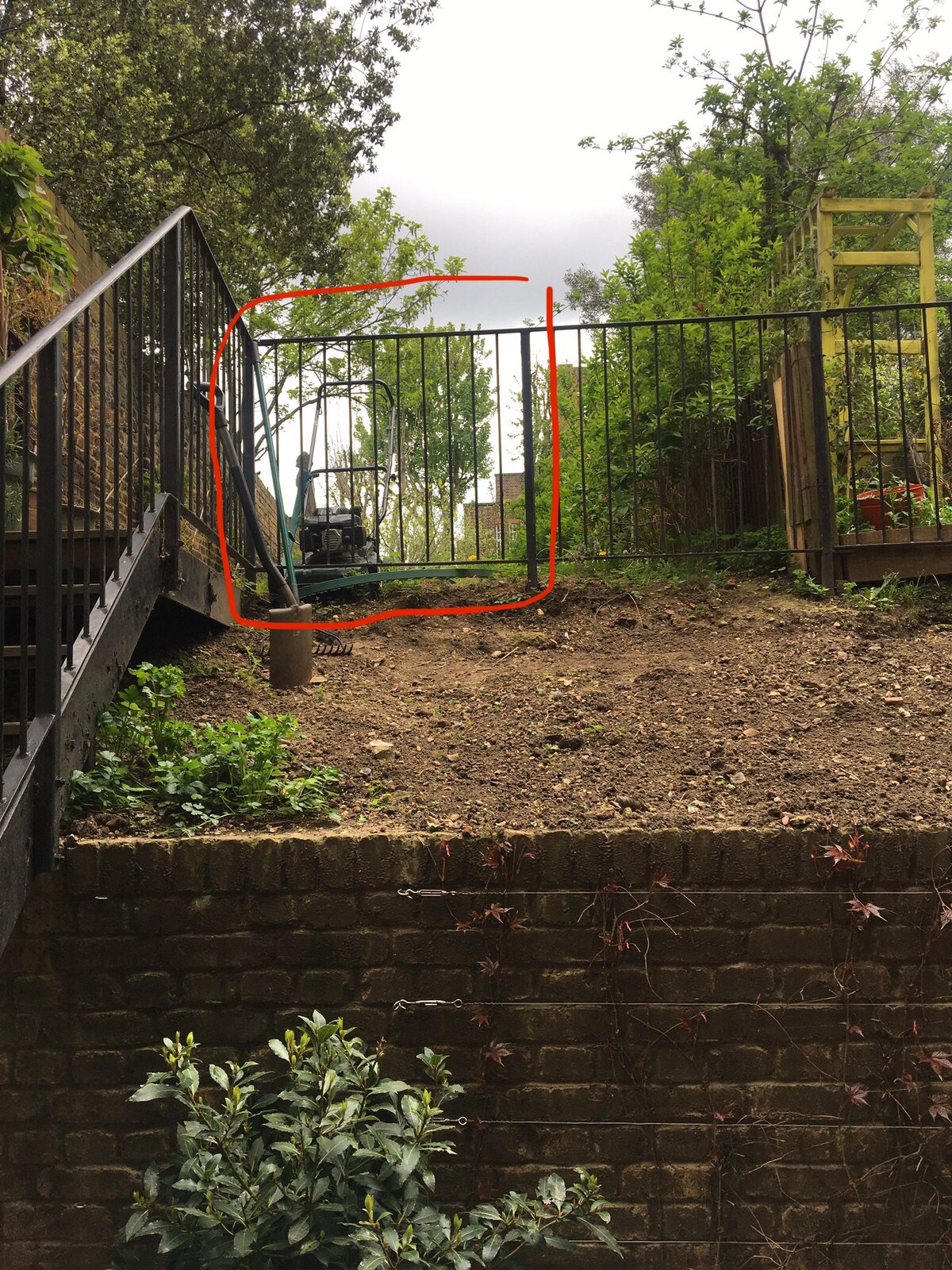 See pic attached - I've got an iron (or steel or whatever) fence surrounding part of my garden. I'd like to open up the fence in the red marked section to make it easier to get to the sloping bit of ground below - it's a bit dangerous at the moment because I have to climb over it and I'm a clumsy oaf: one day I'm likely to slip, fall, roll down the slope and then fall 5ft onto concrete paving slabs - which could do me a lot of damage.