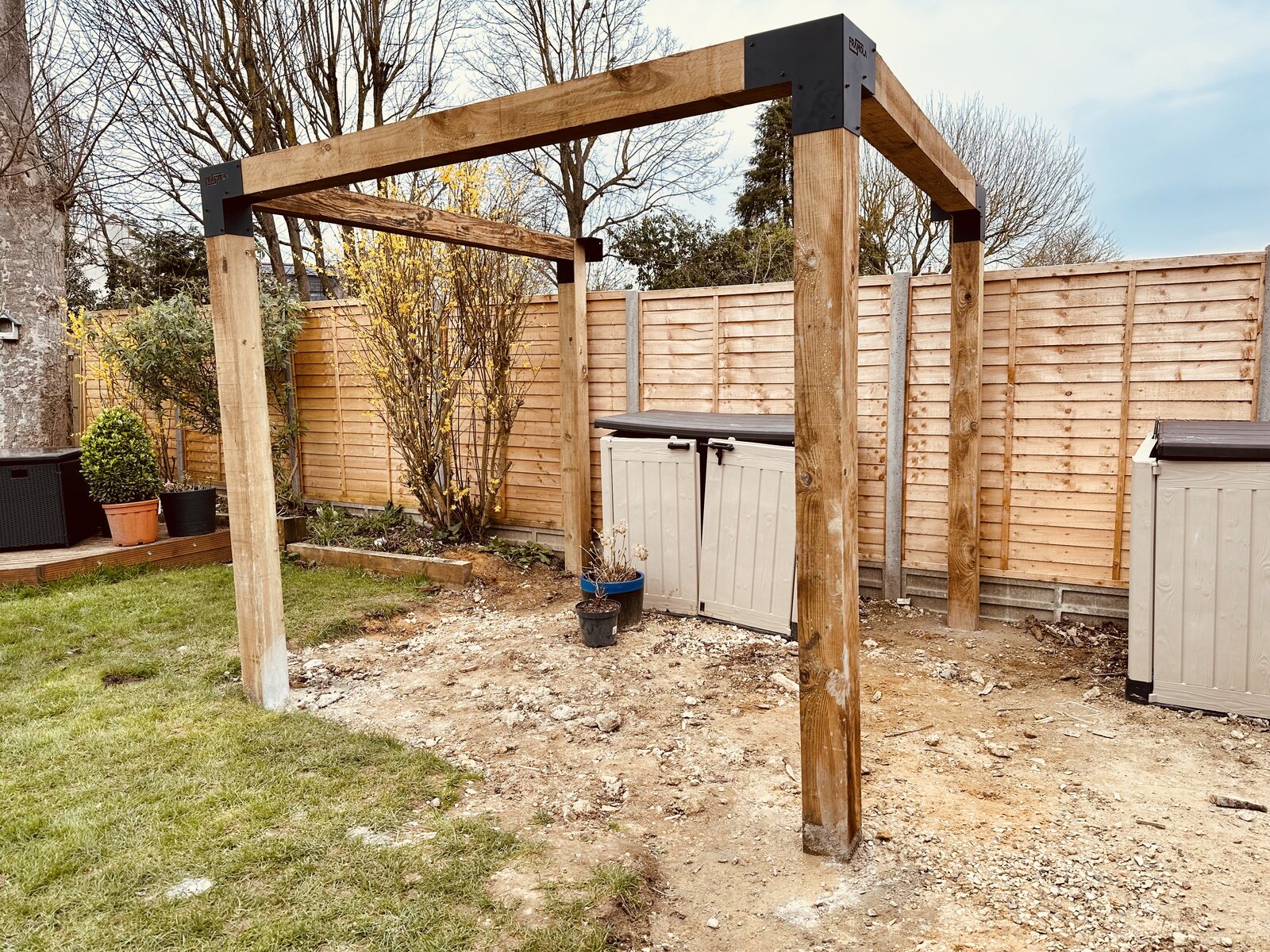 I have built the attached pergola using 6x6inch fence posts. Unfortunately one of the upper posts is ever so slightly too long and is pushing the vertical post out so it’s not sitting straight. I probably need to take 2cm off it.