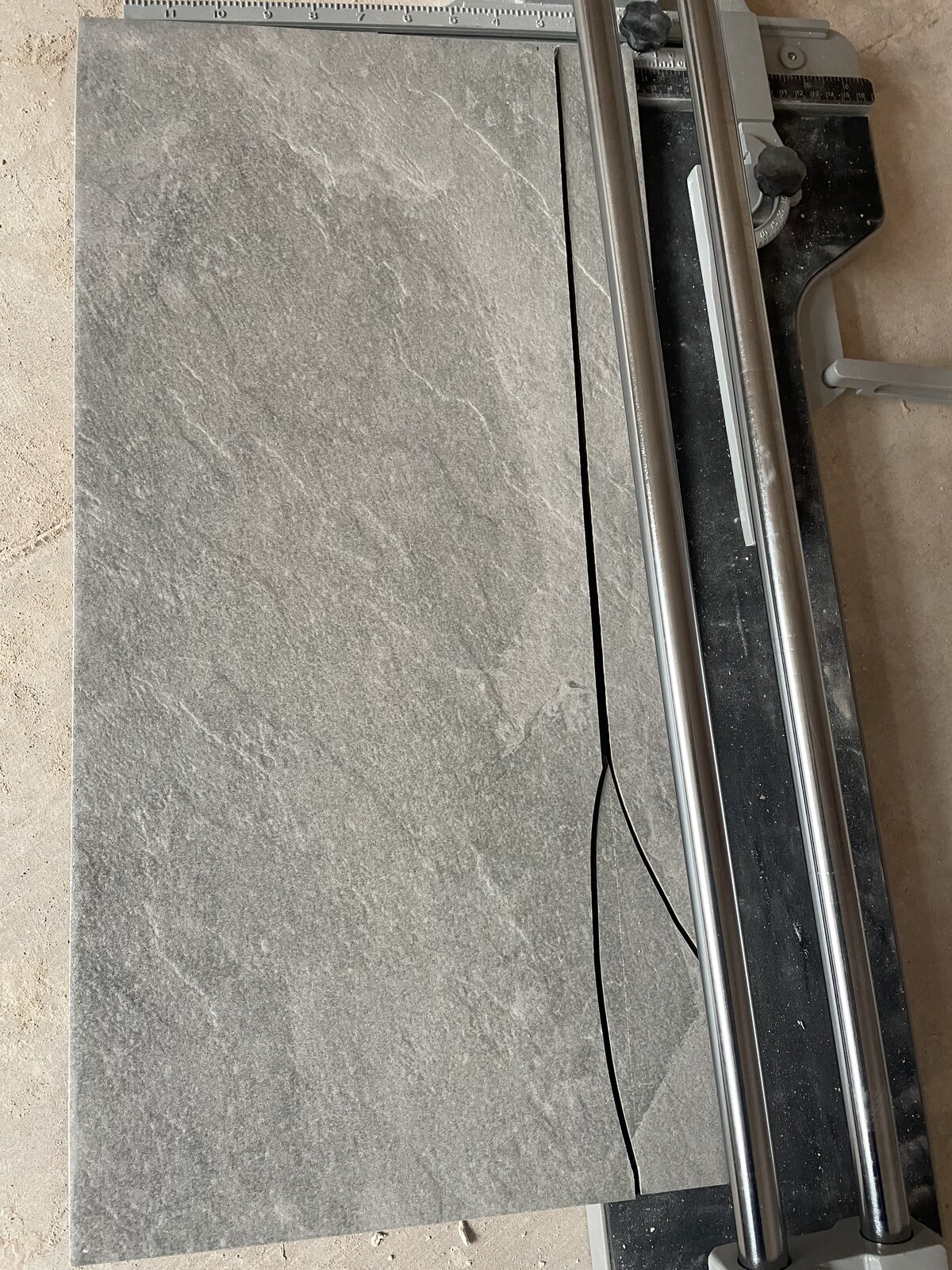 In the past I have used a wet cutter but I have just invested in a Big Clink dry cutter. I’m cutting 600mm x 300mm ceramic tiles. On the short edge they cut fine but on the longer edge I’m having difficulty. The tiles snap neatly at the top but not at the bottom. Any tips or thoughts as to if or what I’m doing wrong?