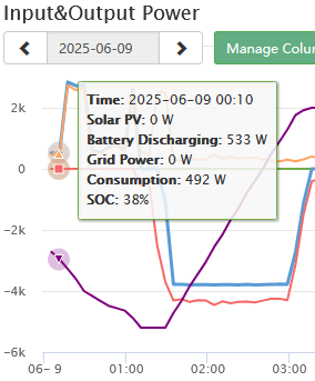 Last night, wanted to run the dishwasher, but off-peak starts at 00:30 and ends 05:30, so question was, "is there enough in the battery to turn it on now?" From the picture