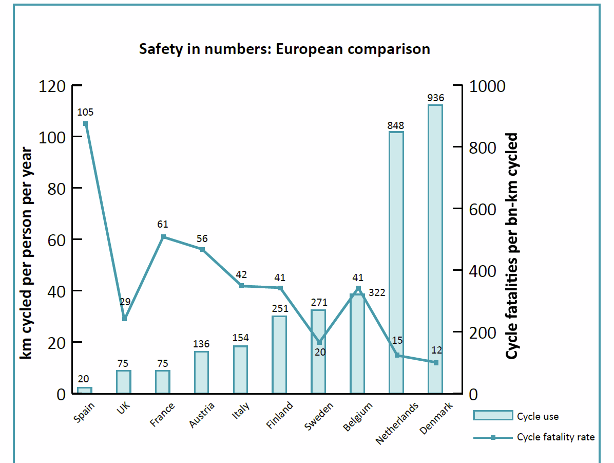 In the UK we have been great at making our roads safe for cars, but not so much for bikes, and people in general. We seem to be happy to put up barriers to protect pedestrians, have crossings with lights, done a few streets that are pedestrianised, but also built out of town retail parks made for cars (anyone been to the retail park near Leeds that has the Ikea there? Imagine going there on bike). This forces people to drive, so we shouldn't be surprised when bike use drops.