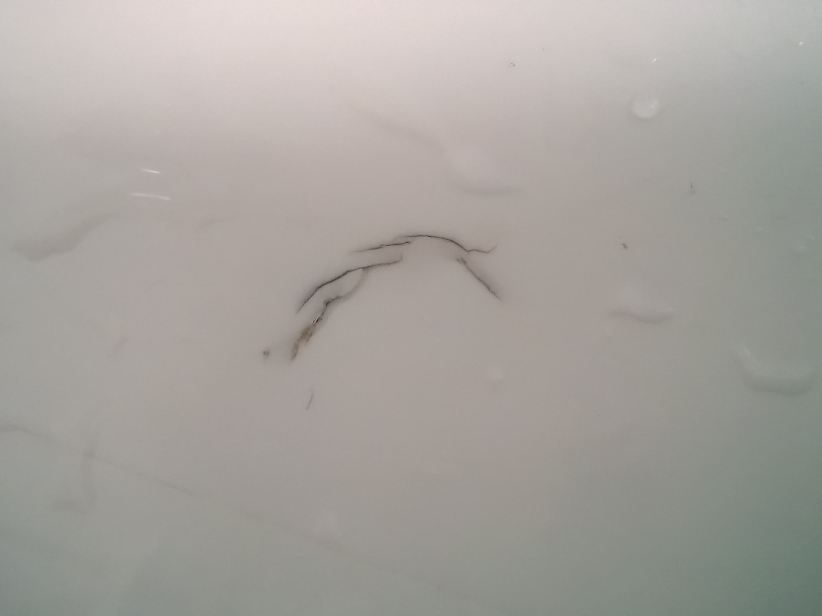 You can see water staining to the chipboard. This stain lines up with some damage to the bath finish above. The damaged area to the paint is around 10 x 10mm. Is it feasible to repair this, or am I better off replacing the bath?
