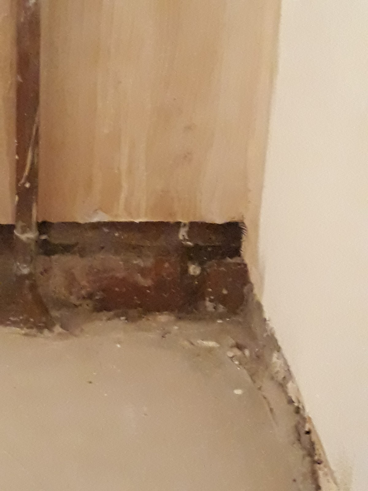 Another forum reply was to check if the screed met the outer brick..pretty sure from before it was filled that I could see the external brick under the door so it may be wicking through from there?. Looking back at old rip out pics It was black right across the wall at lower level where patio is installed so it must be creeping in all around external walls. Im noticing damp patches now on other parts of that patio wall which I really can't work out if patio or external render related.