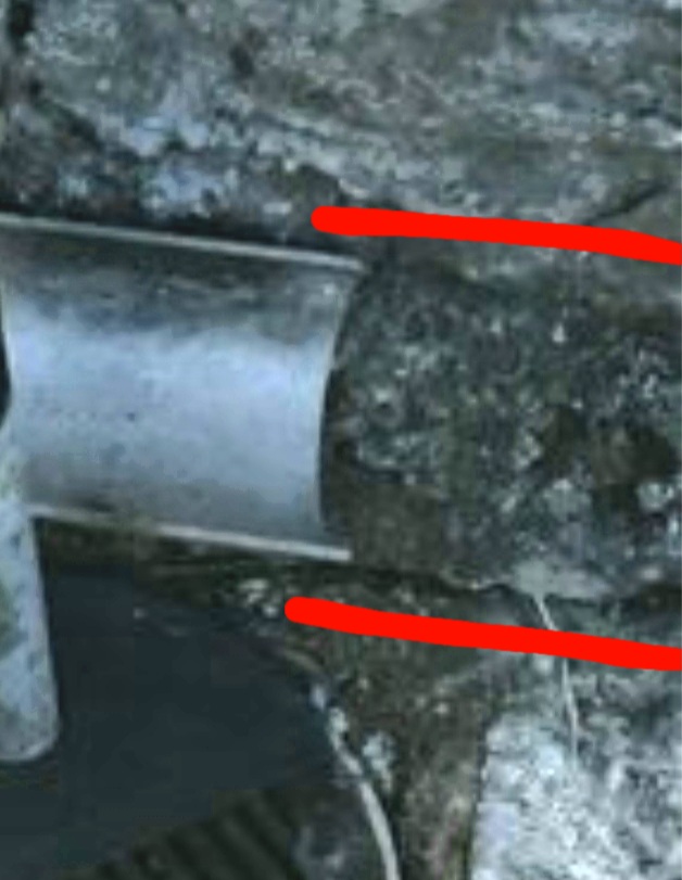 (There isn't a concrete channel, originally there was just the cast iron pipe, but no piece of plastic guttering)