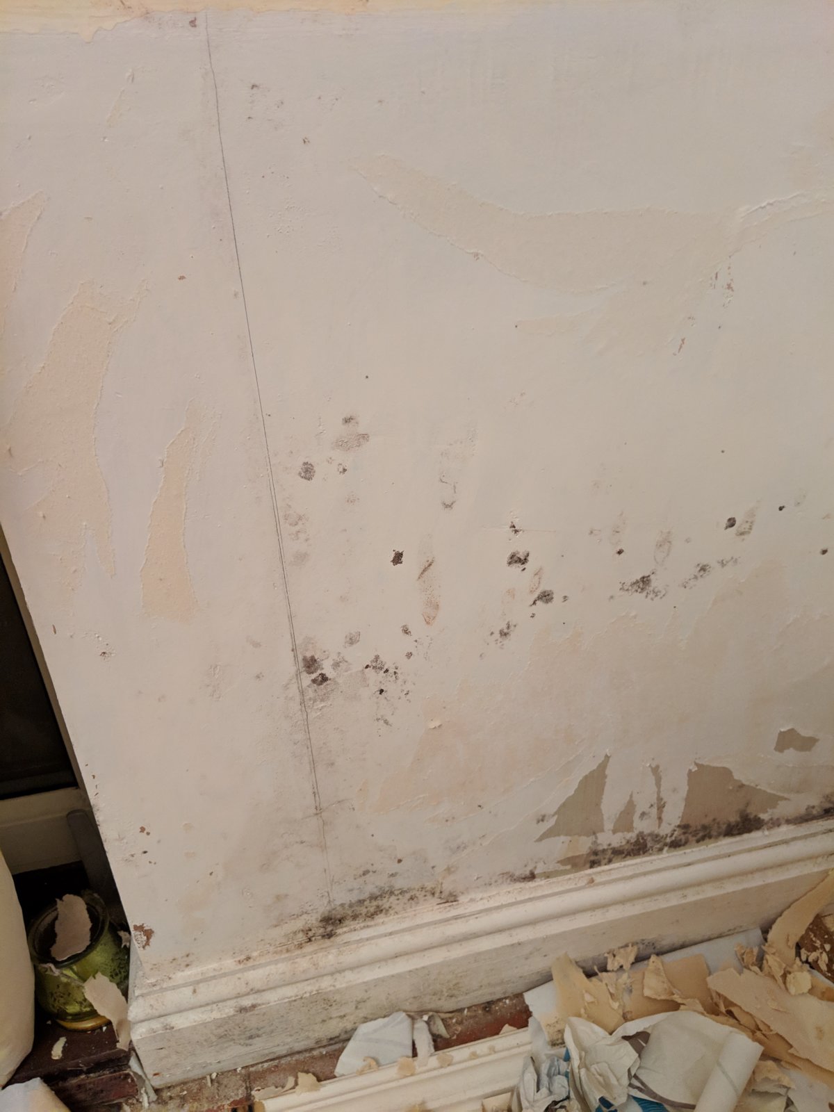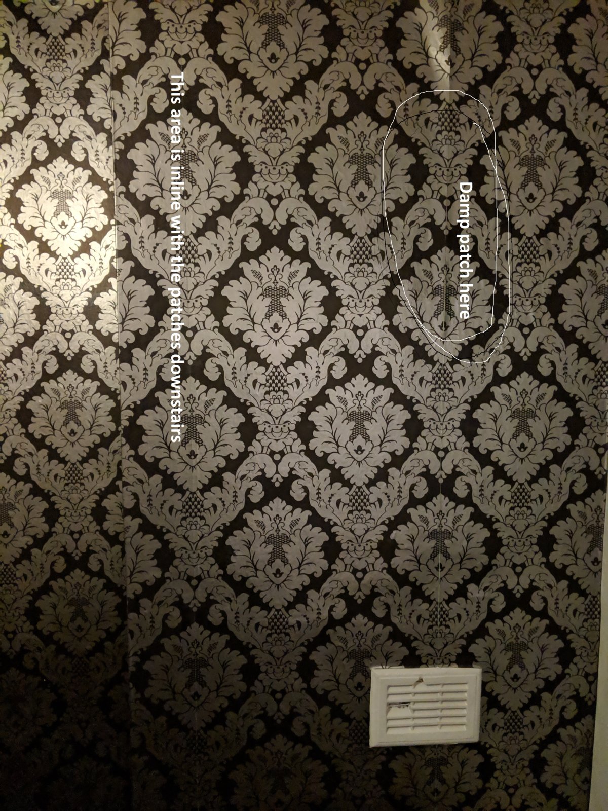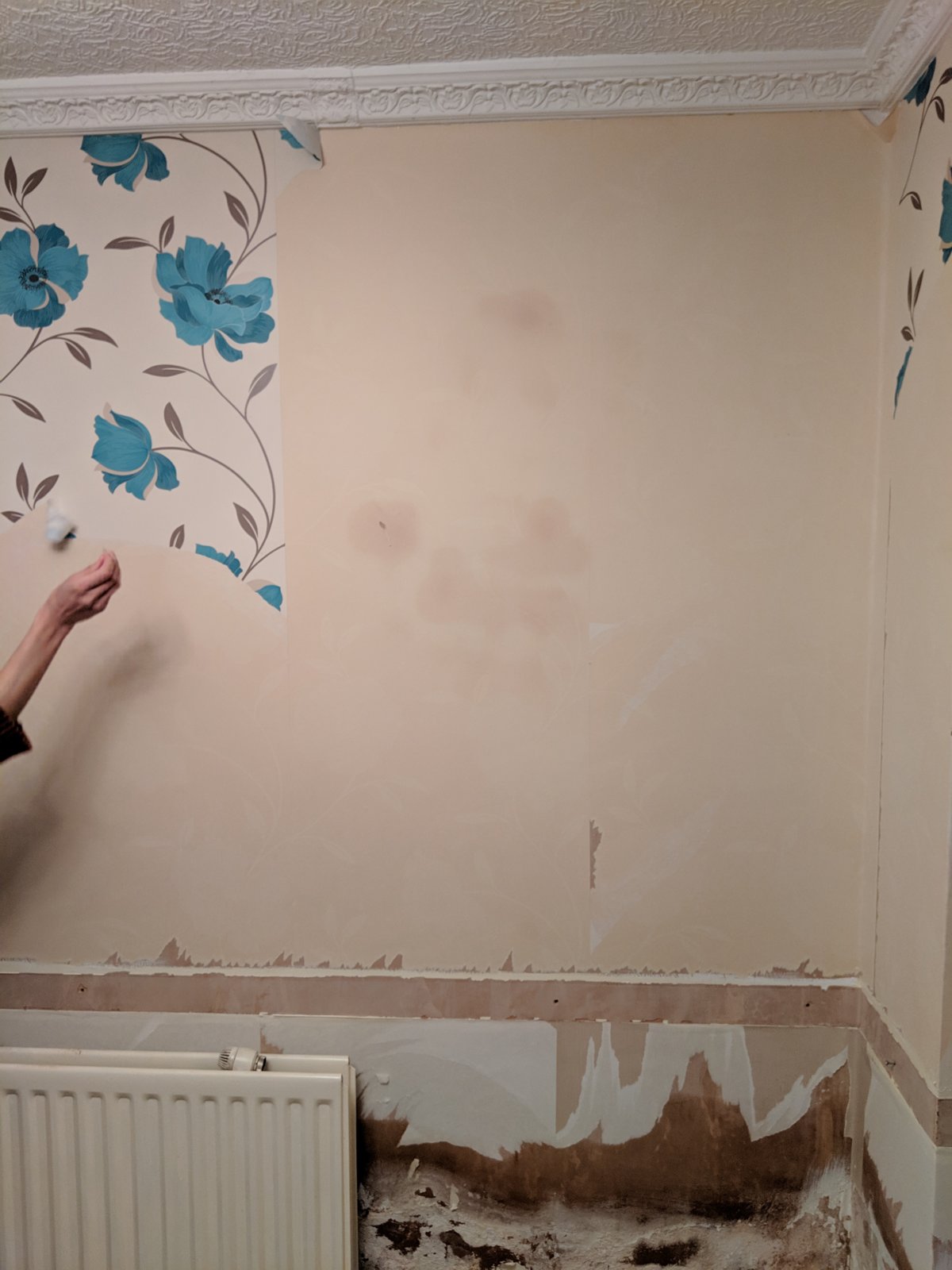 1. While taking the paper off from the damp area, I have noticed a few damp patches much higher up from the floor level. I have also noticed some damp patches in the wall upstairs (inline with these patches)