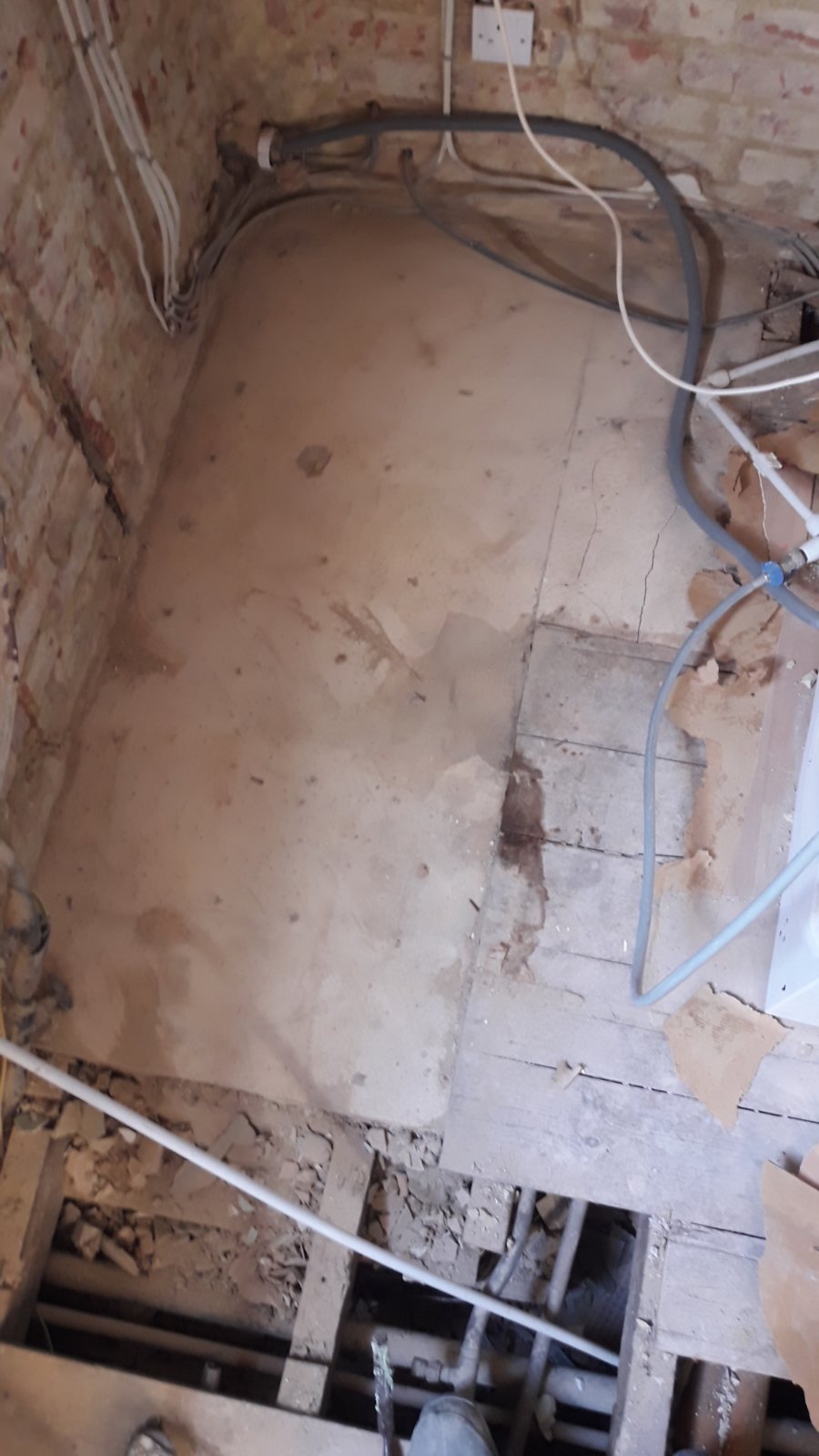 After removing my lino floor in the kitchen I found part of the floor solid not floor boards like the rest of the house. Where the solid floor meets floor boards it was wet all along the boards (in the picture it only looks like like one part but that's because it dried out once the lino was lifted).
