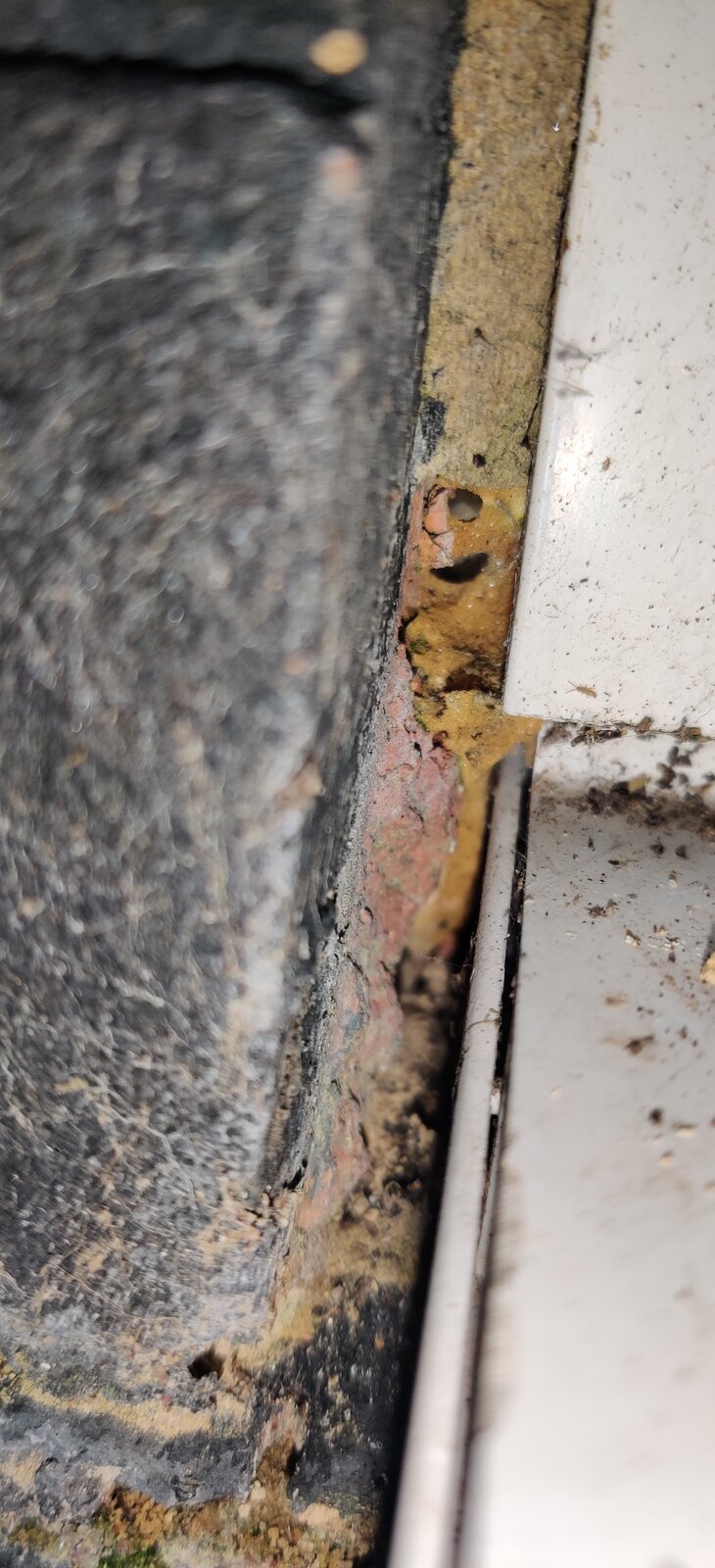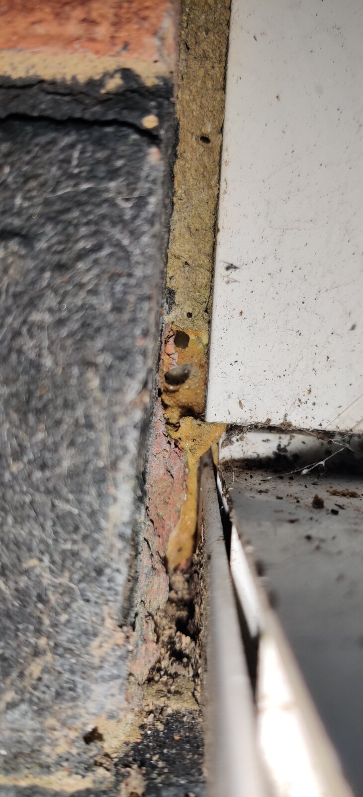 Looking from outside the mortar has crumbled by the sill and it looks as if the previous owner has filled the gap with foam.