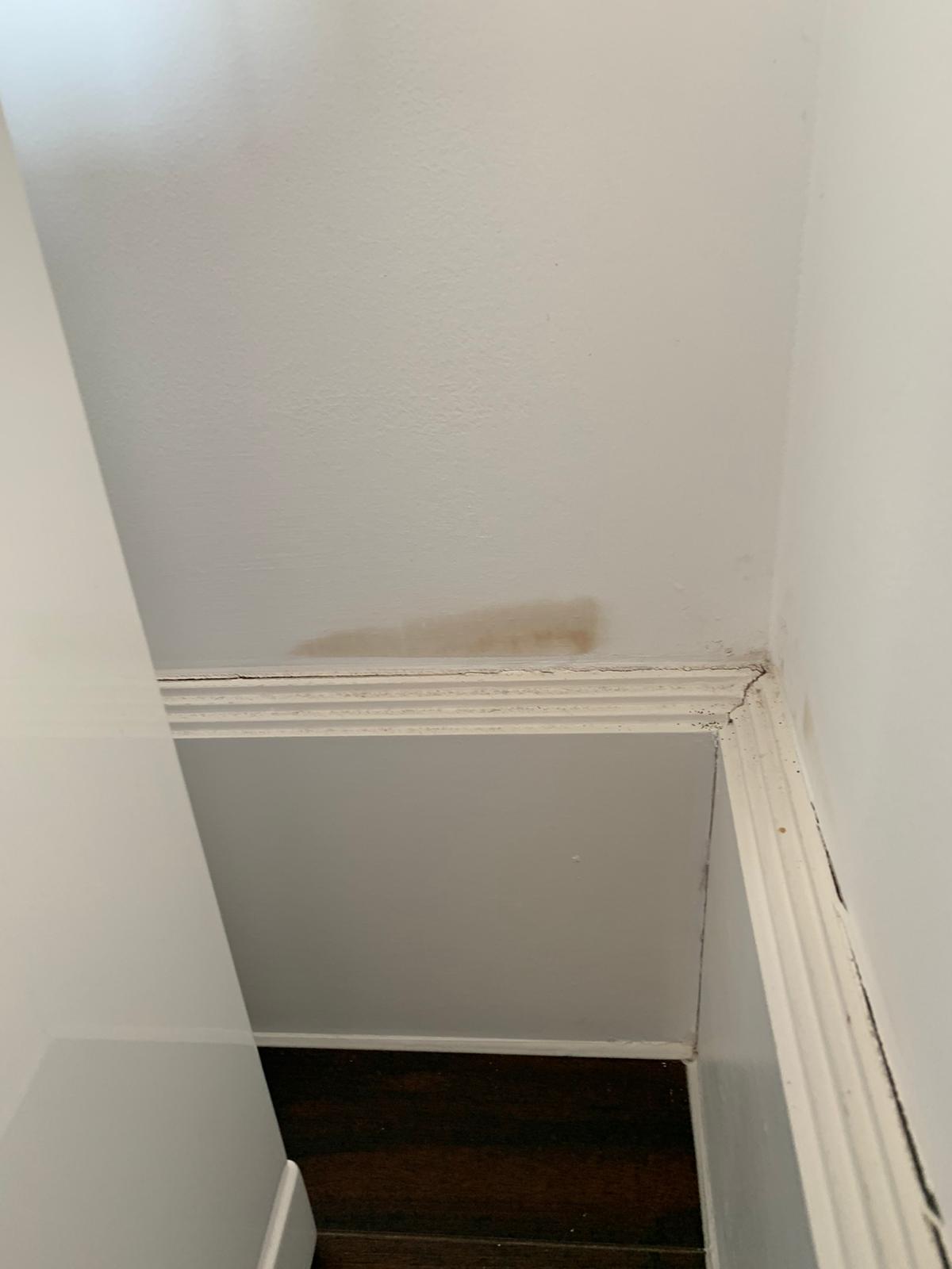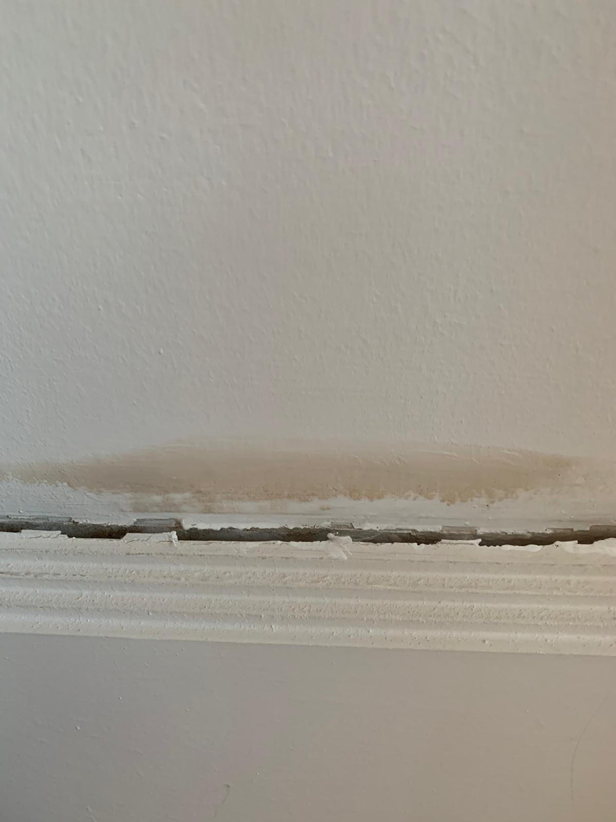 I live in a top floor flat which was newly built around 12 years ago. Over the last couple of months, the skirting boards on a couple of internal walls have started to bow away from the walls. Then in the last couple of weeks, small stains have appeared in a couple of places above the skirting.