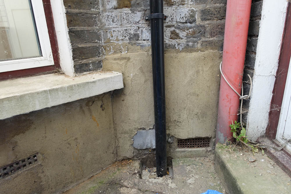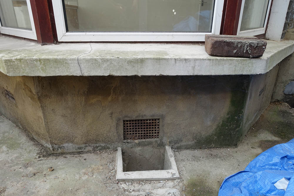 Can you give us some idea of the exterior condition regarding air bricks, and the condition and sealing of the window frame? Is there any evidence of similar concern further along on that wall at all?