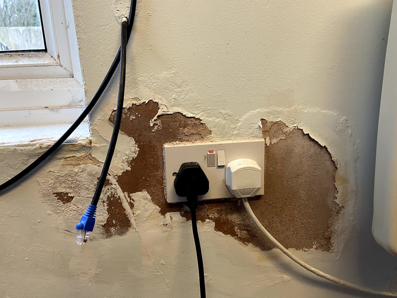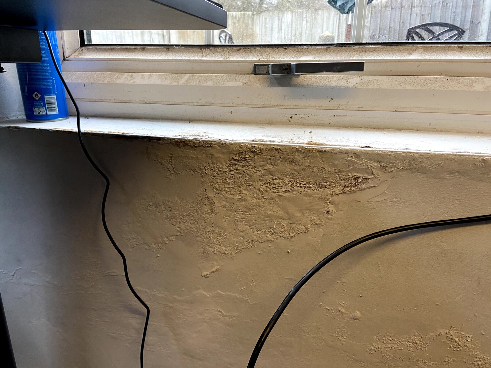However there is a damp problem that I noticed pretty soon as you can see from the photos. The damp is located around one corner of the building, between the windows and can be seen in multiple places from floor to ceiling. I can also see some bubbling paint on the outside closer to the roof on one of the affected walls. Stangely there are no ventilation holes visiblle inside and it gets stuffy after a while if you have a heater on. I suspect that's not helping the damp problem at all.