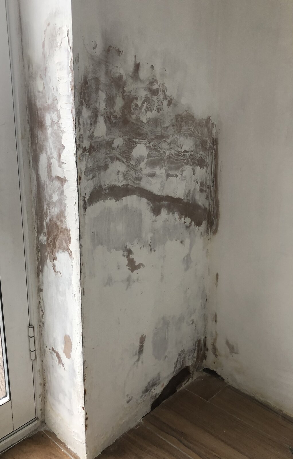 The kitchen was redone around 18 months ago. At that time, this specific wall was replastered, and closed 2 vents as well. Later, the wall became like in the photo - "WithPlaster". Then I assumed that it is a rising damp issue and removed the plaster a couple of weeks ago to replaster that section with these